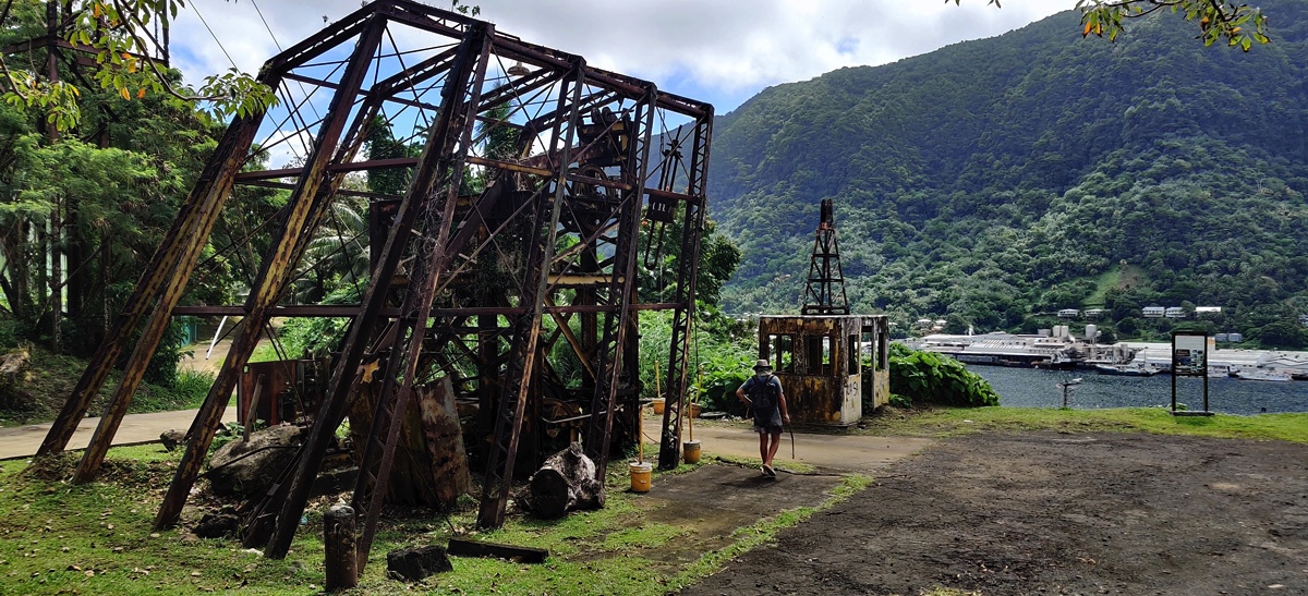 Üle lahe kulges eelmise sajandi teisel poolel funikulöör, mis teenindas teisel pool lahte kõrges mäetipus asuvat telejaama ja vedas vabal ajal ka turiste. 1980. aasta aprillis tähistati aga suurejooneliselt saare lipupäeva ja selleks otstarbeks olid Havailt kutsutud langevarjurid šõud tegema. Langevarjureid kandnud lennuk lendas muidugi funikulööri trossi sisse ja kukkus alla saare ainsasse hotelli ning lahvatas põlema. Nüüd saab näha veel ainult funikulööri rususid.