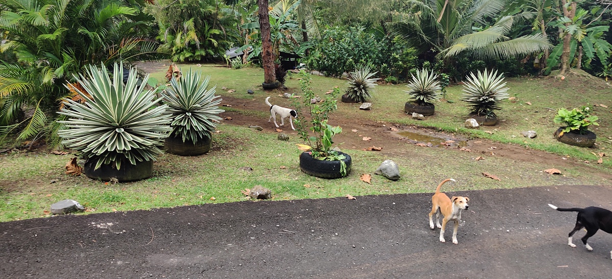 Hulkuvate koertega on sellel saarel üldse suur probleem, sest neil pidi olema mingi haigus nii et, kui nad sind hammustavad ja sa ruttu abi ei saa, siis lõppeb asi gangreeni ja jala amputeerimisega. Koerte pärast ei sõideta siin ka jalgrataste ega rolleritega. Meile õpetati, et kui kaigast just käe pärast pole, siis tuleb kurja häälega öelda HALU ja teha liigutus nagu kahmaksid maast kivi järele. Teistel Samoa saartel sellist probleemi ei pidanud olema.