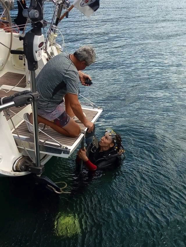 Kui see tehtud, tuli pardale kaks tolliametnikku. Üks oli nii jäme, et ei suutnid kokpitti ronida, teine kõhnem ronis siis paati sisse ja hakkas kõiki kappe ja sahtleid avama. Lõpuks jõudis meie alkoholi laoni. Naine hakkas seda juba avama, kui tolliametnik ühtäkki teatas, et pole vaja. Kõik on korras ja ronis välja... Naine jäi segaduses järele vahtima aga kohe selgus ka põhjus. Nimelt oli priskem poiss oma iphone 12 vette pillanud. Veiko lohutas teda, et ärgu muretsegu, naine läheb kohe sukelduma, kui tolliprotseduurid läbi ... ja nii saidki tolliprotseduurid kohe läbi:)