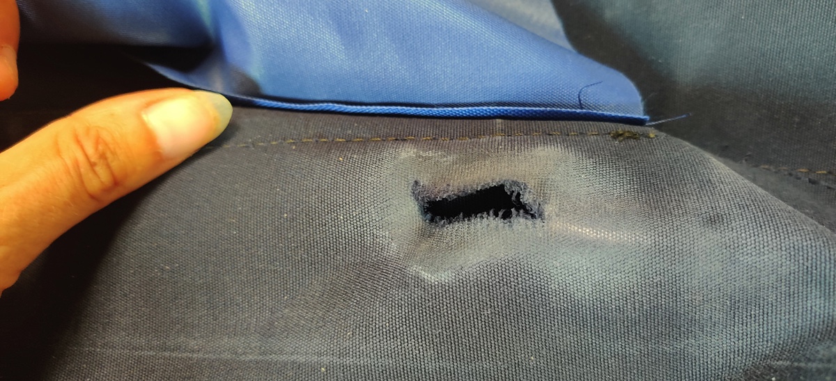 Naine parandab pimini toppi. Päikesepaneelid on sellele augud sisse hõõrunud.