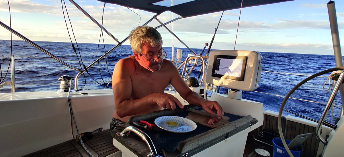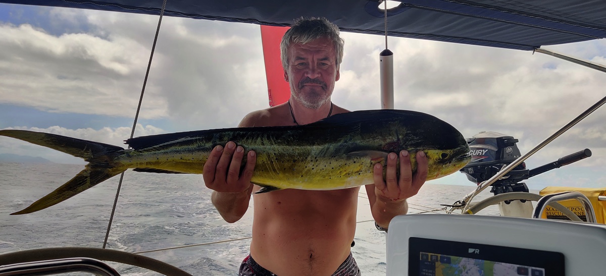 Levukast Suvasse on ca 50 NM. Tee peal kostitas neptum meid korraliku 4 kilose kuldmakrelliga. Ägasime selle ärasöömisega, oleks olnud paras neljale:)