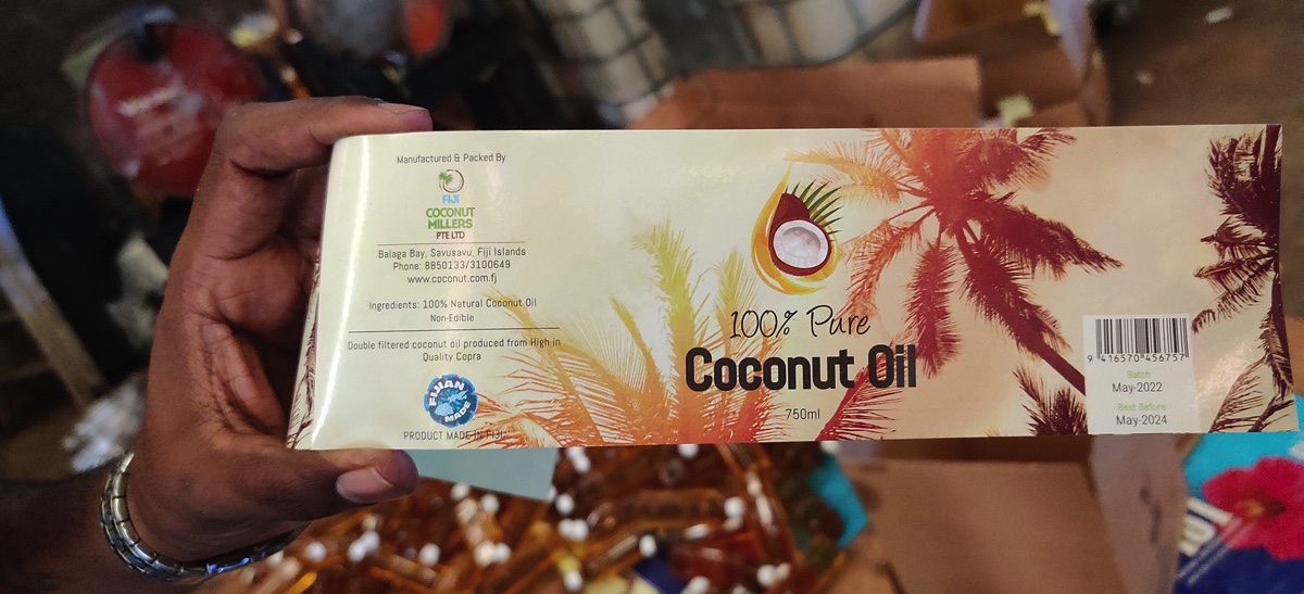 Coprast pressitakse õli. Kestad lähevad loomatoiduks. Õli pudeldatakse käsitsi… tuleb ilmselt odavam kui masinaga...