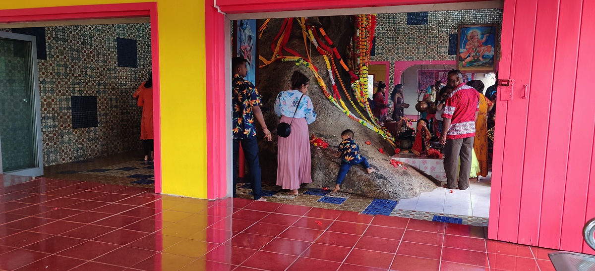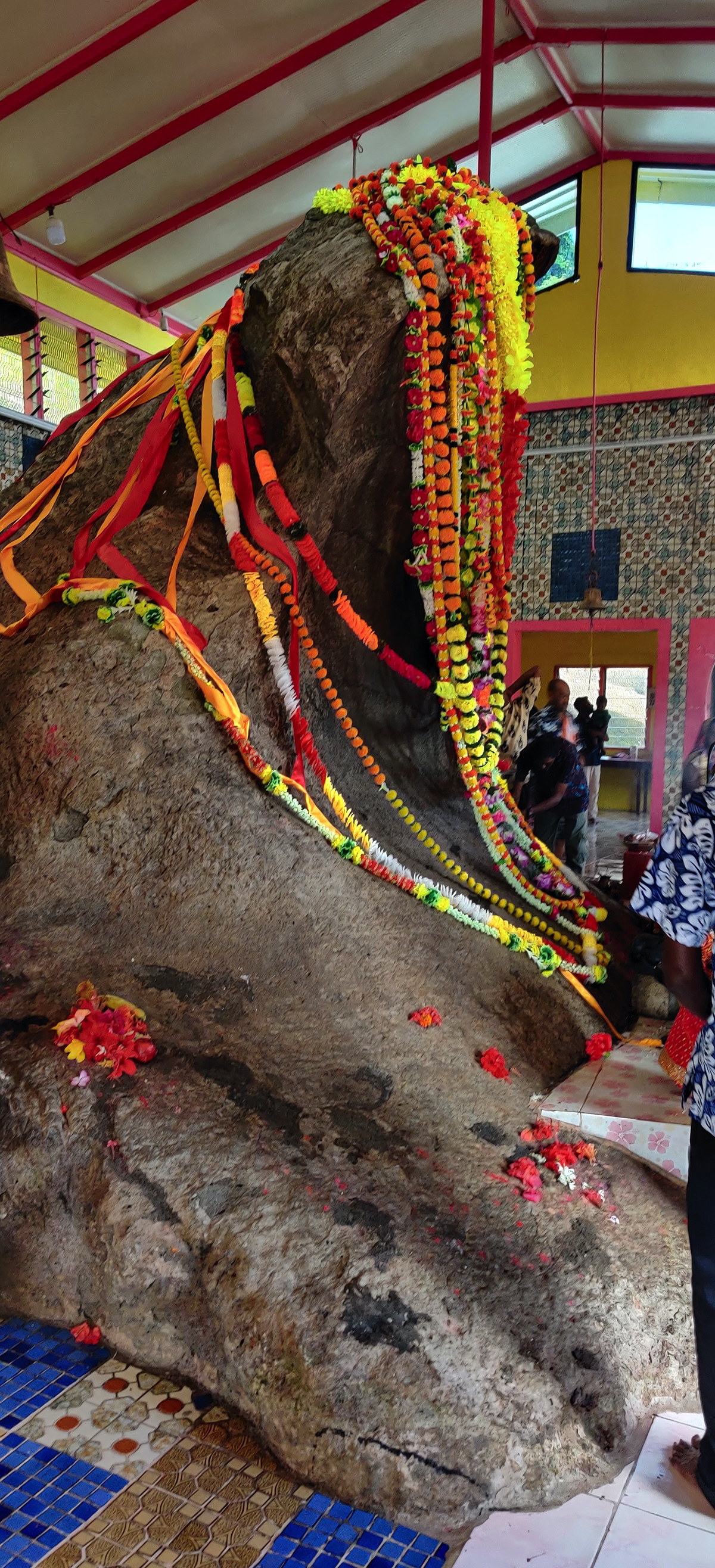 Käisime India templis, kus on maa seest pidevalt järjest enam välja kasvav kivi, mida peetakse pühaks. See on tingitud saare vulkaanilidest pinnasest aga kohalikud peavad seda imeks, seda enam, et kivi sees on üks auk, kuhu vett valades see ära kaob (ja iga külastaja käis ja valas ühe lähkritäie:).