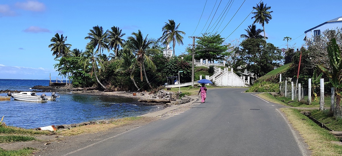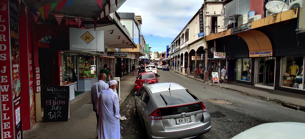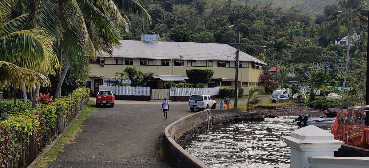 ning Fidzi vanim töötav hotell, Royal Hotel, mis on praeguseks juba üsna väsinud moega. Suletud tankla kõrval suges naisterahvas oma lapse pead. Ilmselt on siin täidega probleeme.