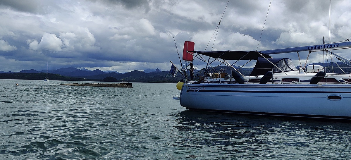 Kuna ametnikud ütlesid, et kui tempel on passis, siis tuleb samal päeval lahkuda, hiivasime enne päikeseloojangut ankru (mudasest põhjast ca 10m sügavuselt) ja sahistasime ettevaatlikult mööda igasugu lahes vedelevatest vrakkidest. Saarelt levivat internetti jagus pea kogu ööks.