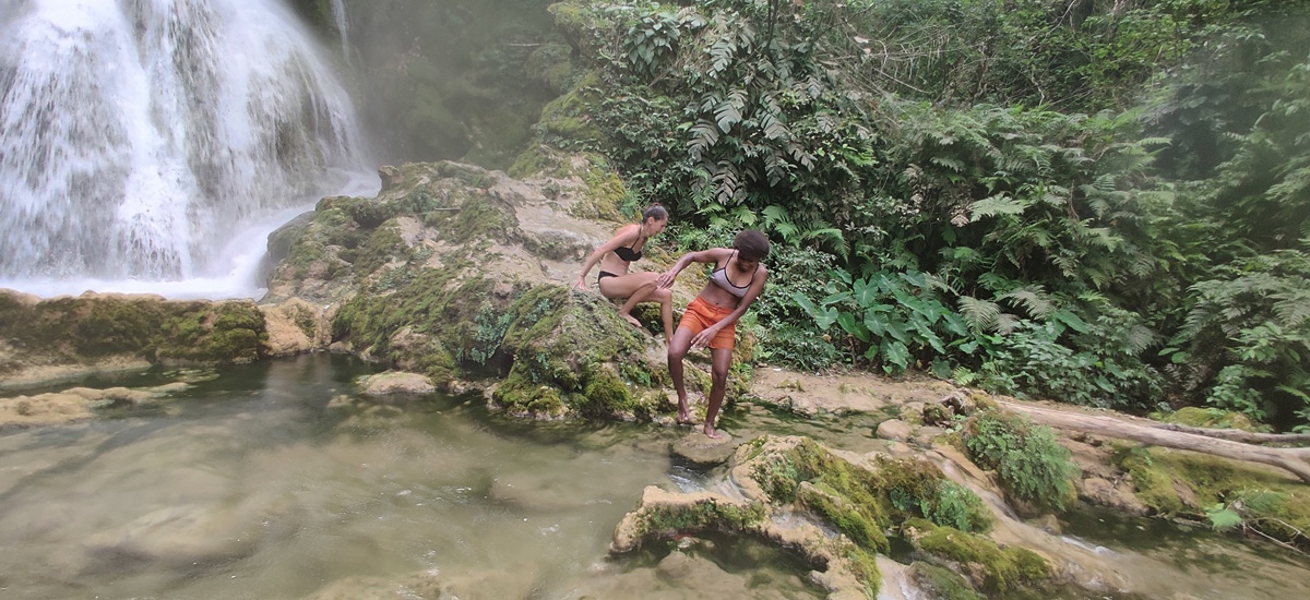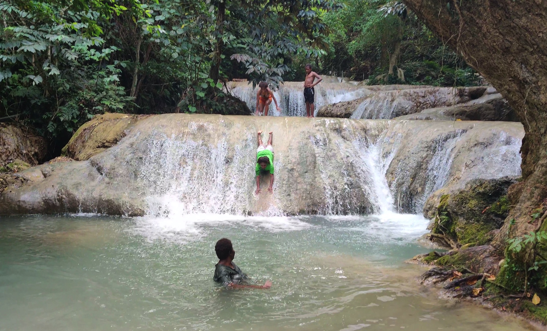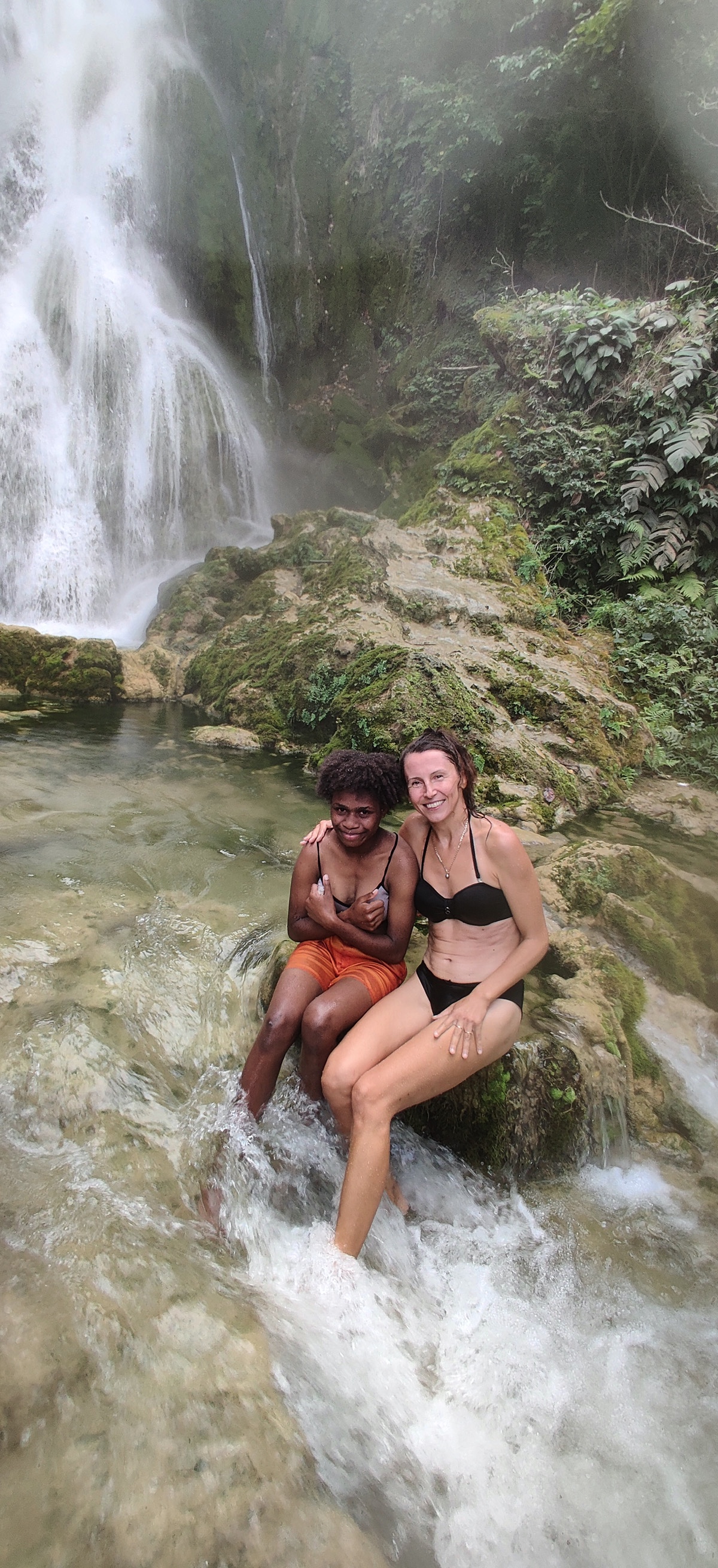 Kohale jõudes avanes lõbus vaatepilt - kohalikud lapsed, nende emad ja isegi vanaemad - kõik liuglesid ja hüppasid igatepidi mägijõe uuristatud looduslikesse basseinidesse:) Me püüdsime ikka eestlaste au kaitsta ja tegime enamuse asju, mis kohalikud ette näitasid, järele ... tagumikud olid pärast kividel libisemisest korralikult ära kraabitud aga see oli kogu lõbu eest väike hind:)