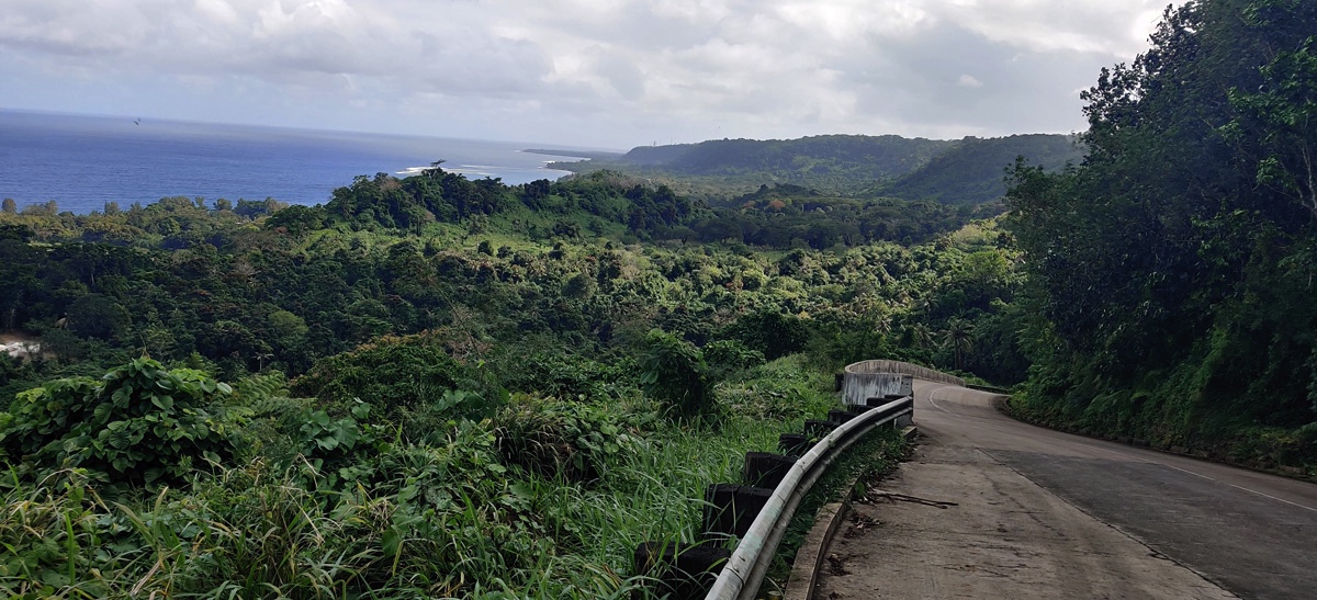 Tee viis mööda saare läänekülge mägedesse. Taksojuht võttus kütust. Sõitsime edasi. Sadakond meetrit enne mäetippu oli vaateplats. Palusime peatust, et pilte teha aga see osutus saatuslikuks - buss enam ei käivitunudki. Ronisime siis bussist välja ja lükkasime bussi käima.