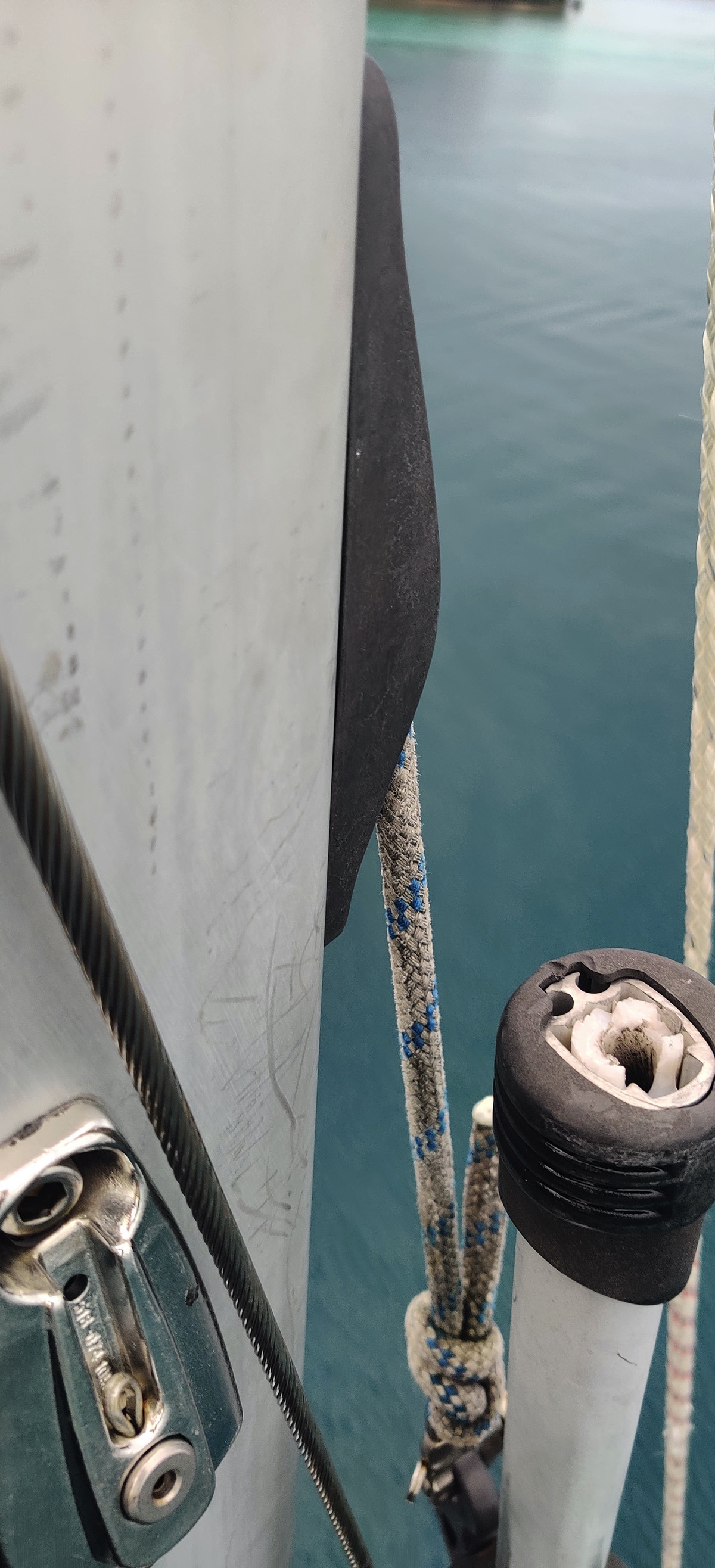 Järgmisel hommikul tuli meile appi jahtkapten Venu ja võtsime kenu koos furlinguga paadi küljest lahti ning kerisime maapeal purje furlingu küljest ära. Furlingu alumiiniumist hülssi ei õnnestunud juppideks saada (hoolimata usinale youtobe videote vahtimisele) ja nii ladustasime ta pika latina Boatyardi aiaäärde. Uut trossi ootama.