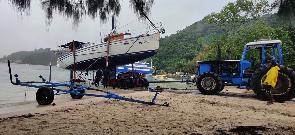 2.septembri hommikul startisime Port Vilast eesmärgiga külastada erinevaid Vanuatu saari ja liikuda siis edasi Salomoni saarestikku. Ilm pli ilus ja päikseline, küljetuult oli ka parajalt ca 7m/s. Lained nii 1,5 meetrised. Olime jõudnud saarest ca 15 miili kaugusele, kui äkki käis tuhm plaksatus ning avastasime, et kenu ripub jõuetult ees vöörstaak on purunenud...