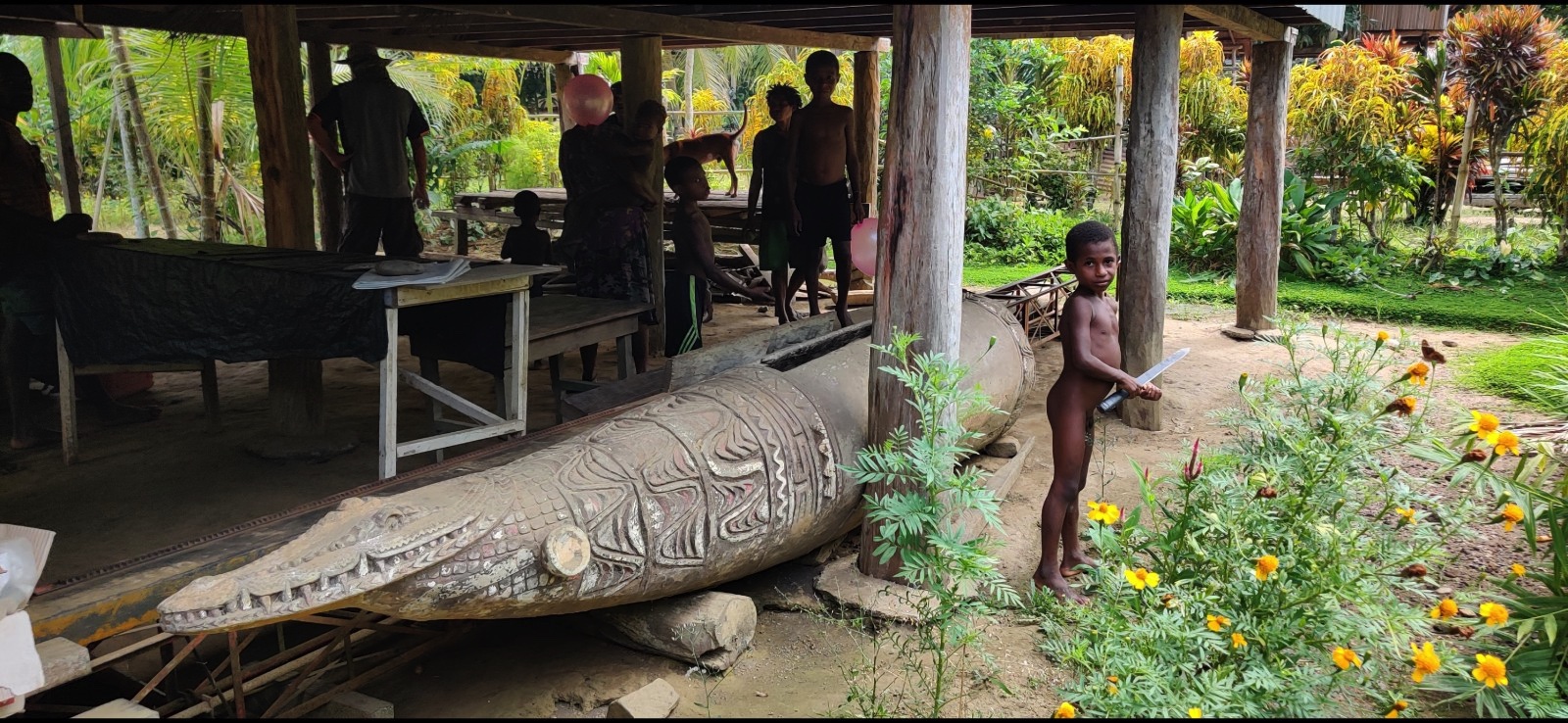 Seal läksid pereliikmed maha ja sõitsime edasi middle-Sepiku külasse nimega Korogu, kus on suur spirit house.