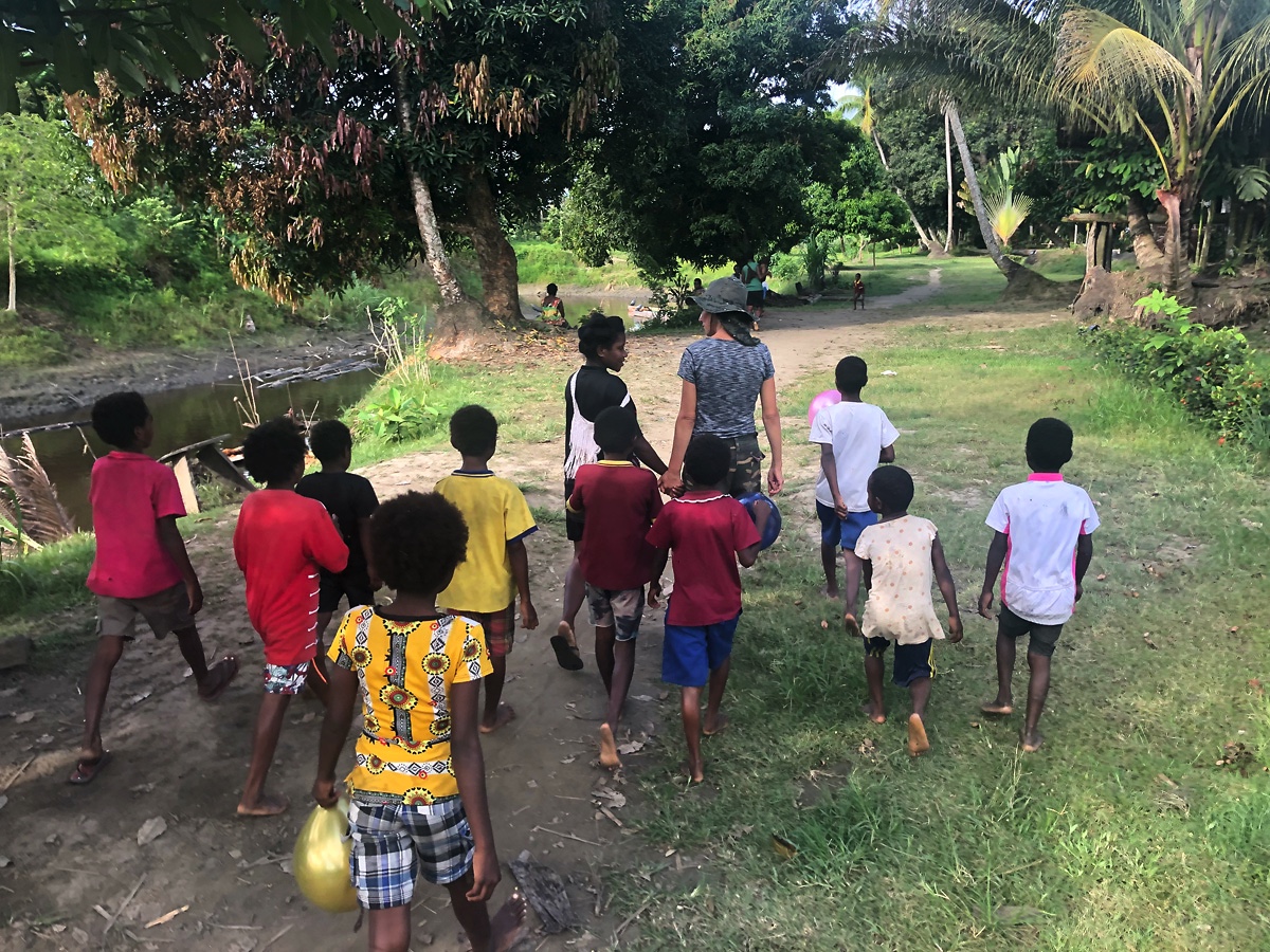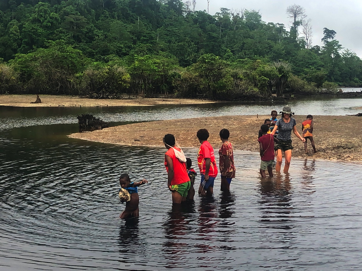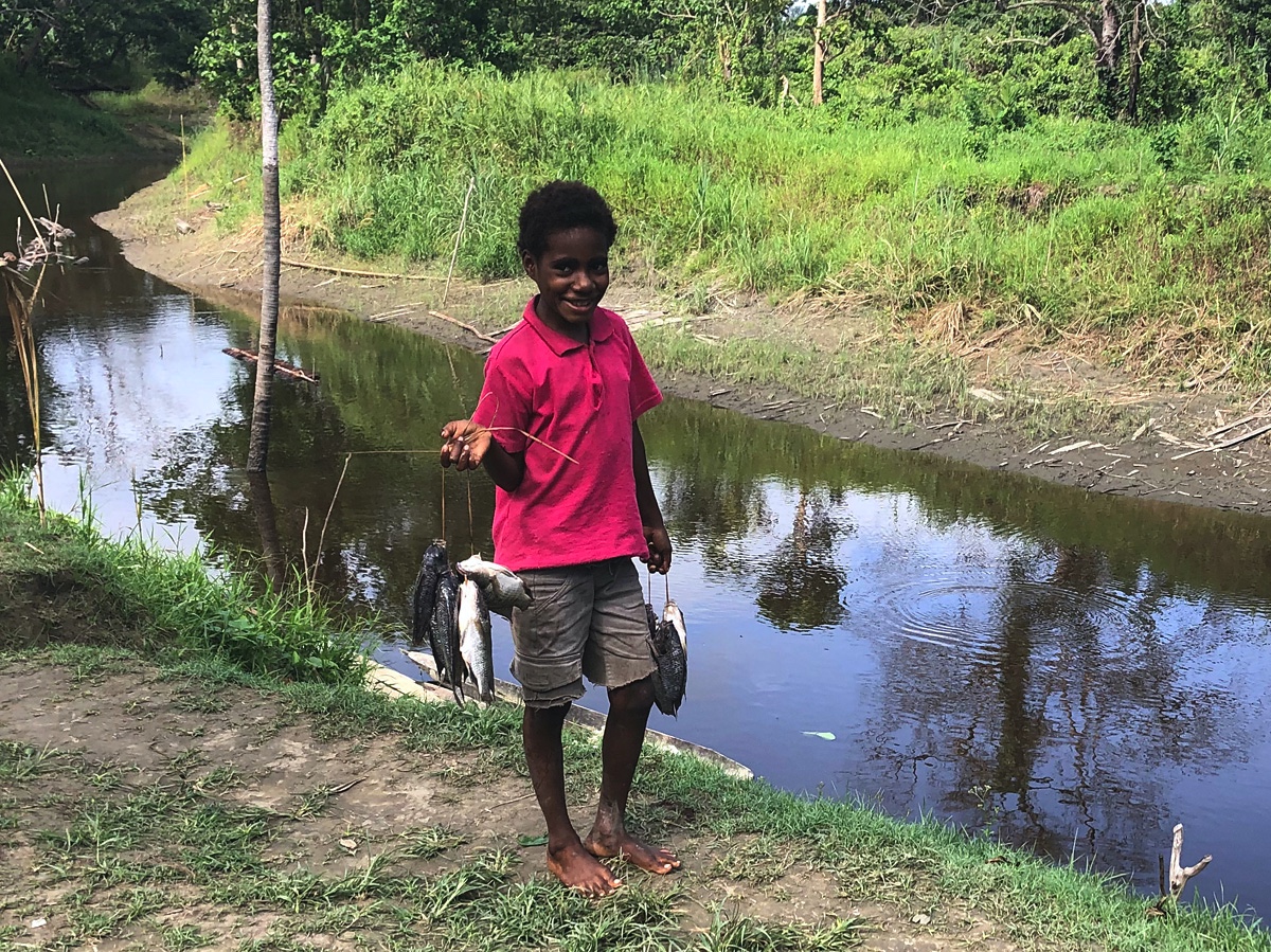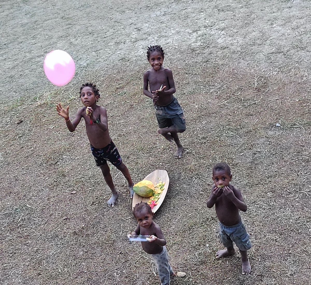 Kõik käivad ringi paljajalu. Lapsed ujuvad jões - krokodillid pidavat külade lähedale tulema peamiselt öösel. Naine pakkus lastele küpsised ja puhus täis mõned õhupallid. Kohe oli jõeäär rõõmsaid kilkeid täis ehk tsiteerides Puhhi: "Keegi ei saa olla õnnetu, kui tal on väkemalt üks punane õhupall."