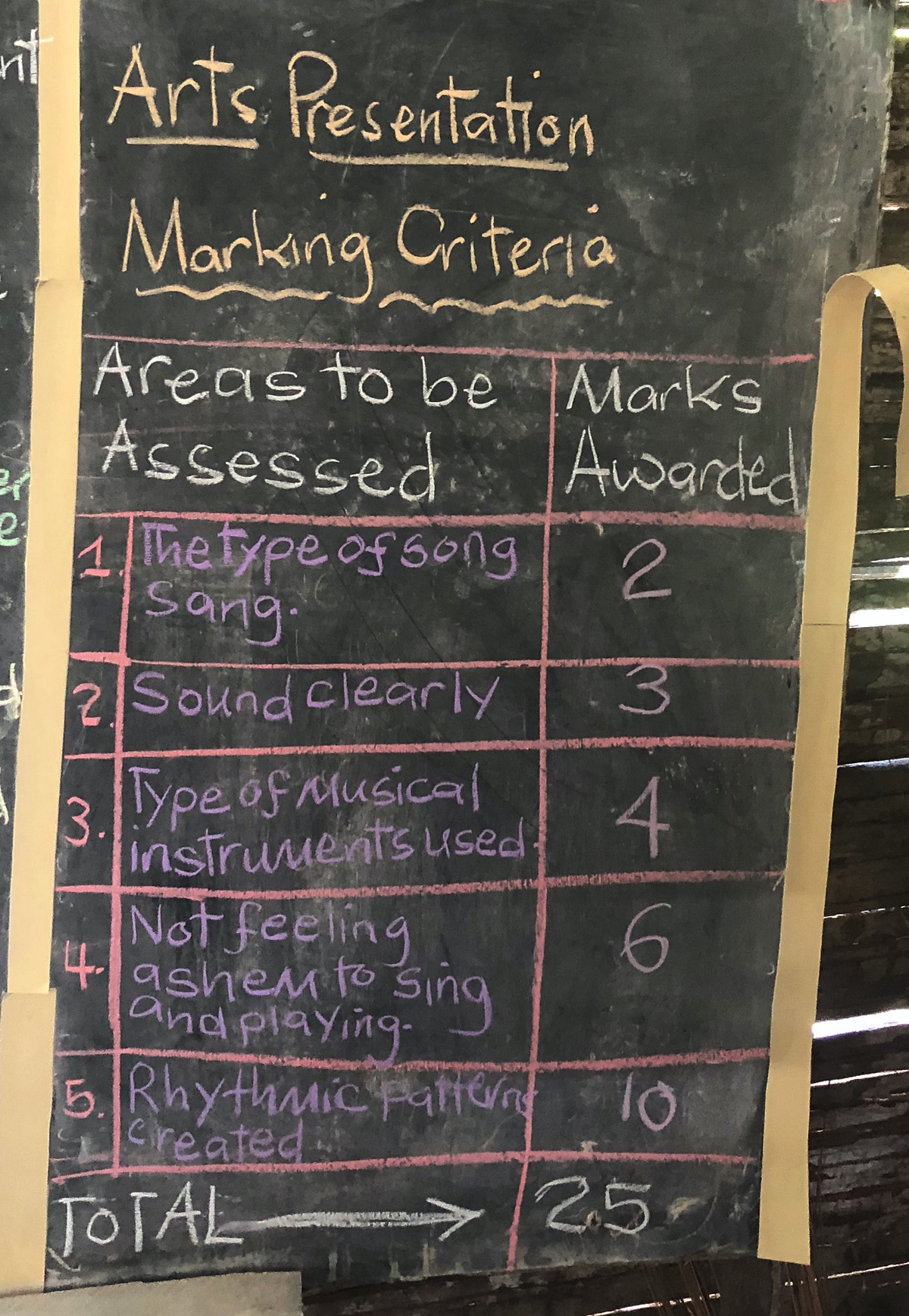 Üllatab oskuste hindamise süsteemi põhjalikkus. Näiteks on siin õpilasele antud ülesandeks esitada mingi laul kasutades ka muusikalist instrumenti: