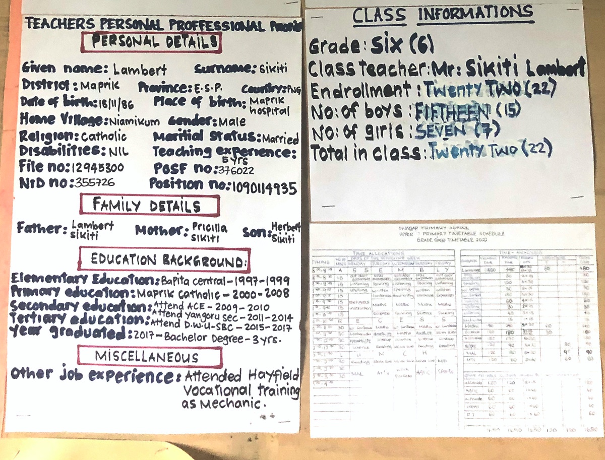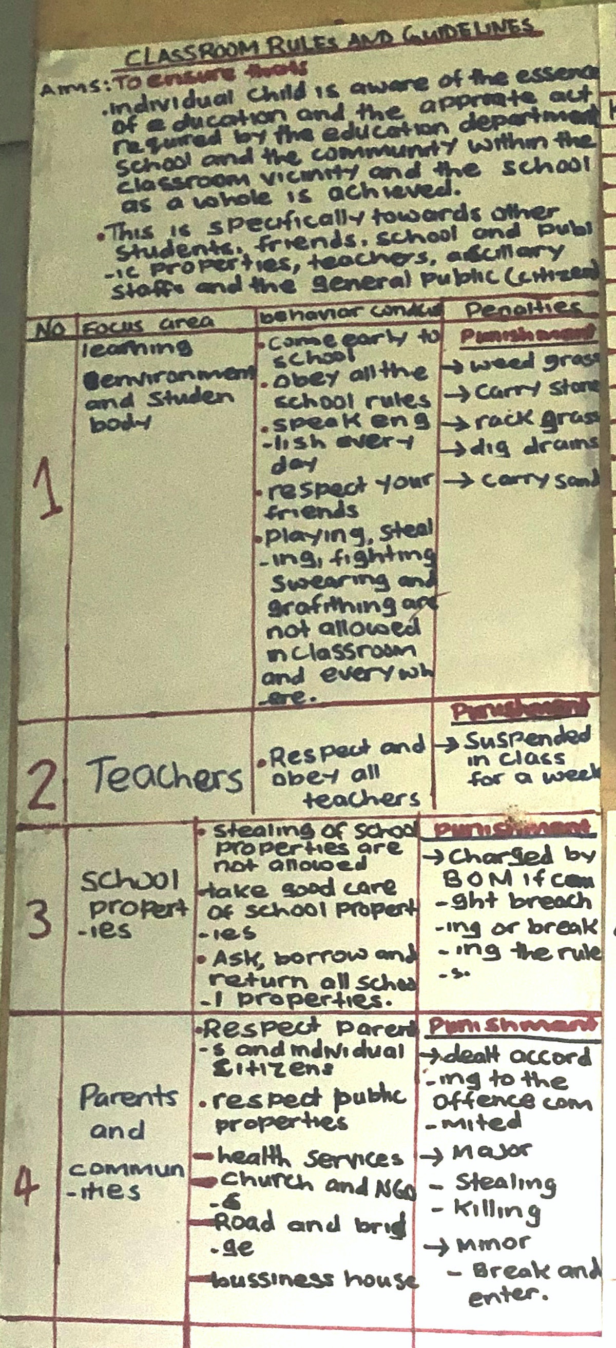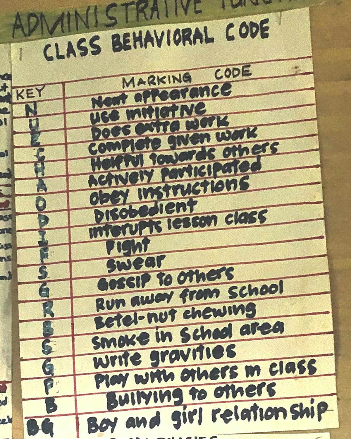 Kooli juures kohtusime õpetajatega - kahe noormehega, kes olid meie mõistes keskharidusega ja õpetasid siis lapsi esimesest kuni kuuenda klassini. Nad rääkisid, et kuuest põhiklassist on laste puudusel praegu avatud ainult neli. Näitasid klassiruume ja rääkisid õppekorraldusest. Esimese klassi ruumis pinke polnud st lapsed pidid istuma maas liival.