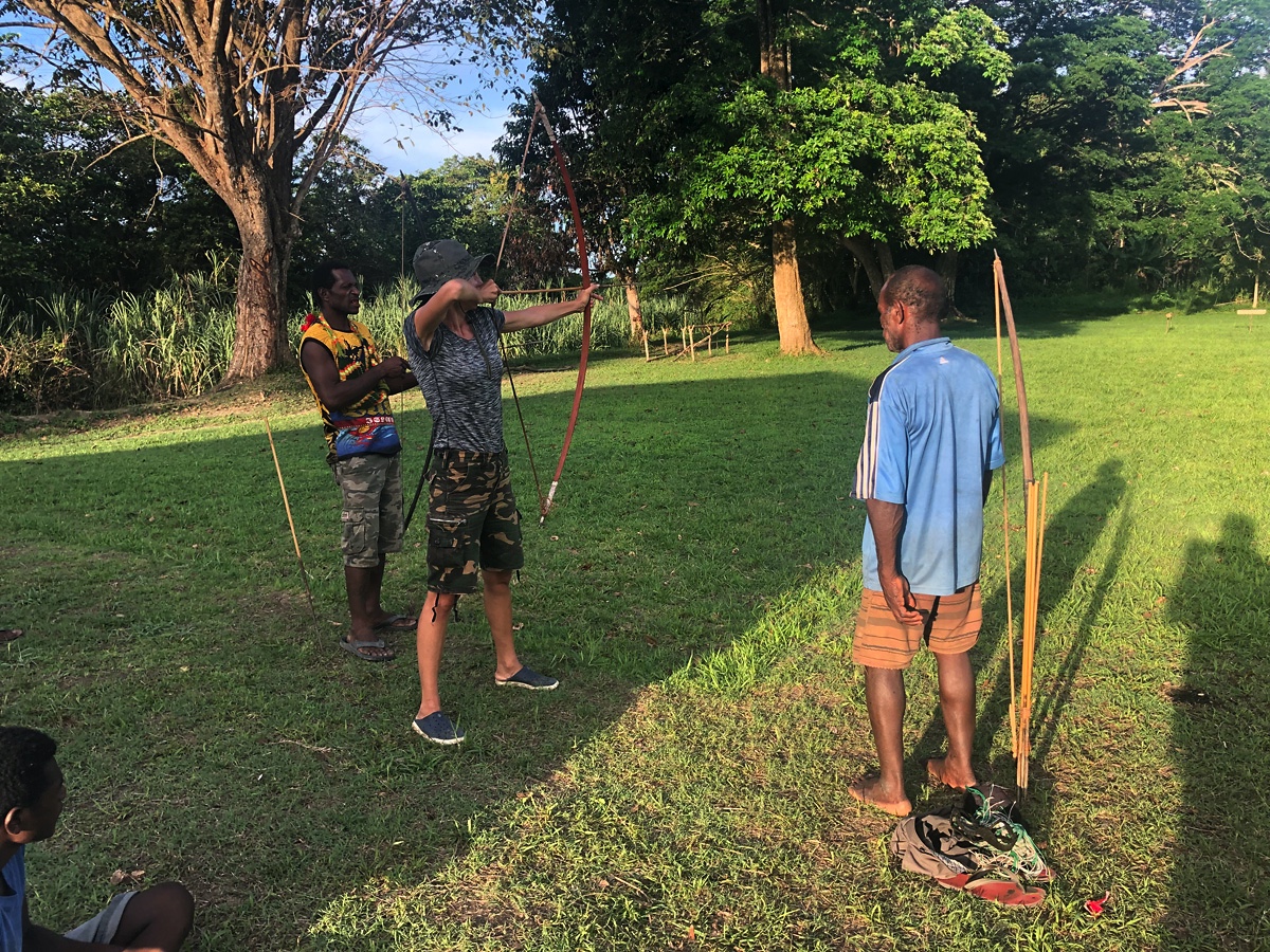Kooli juurde kuulub alati jalgpalliväljak. Selles külas oli ka vibulaskmise harjutusplats (vibu kasutatakse siin aktiivselt jahipidamisel)! Vanameister, kes ise oma käega oli kõik vibud ja nooled meisterdanud, oli ka platsis ning naisel avanes võimalus proovida kohalikku vibulaskmise tehnikat.