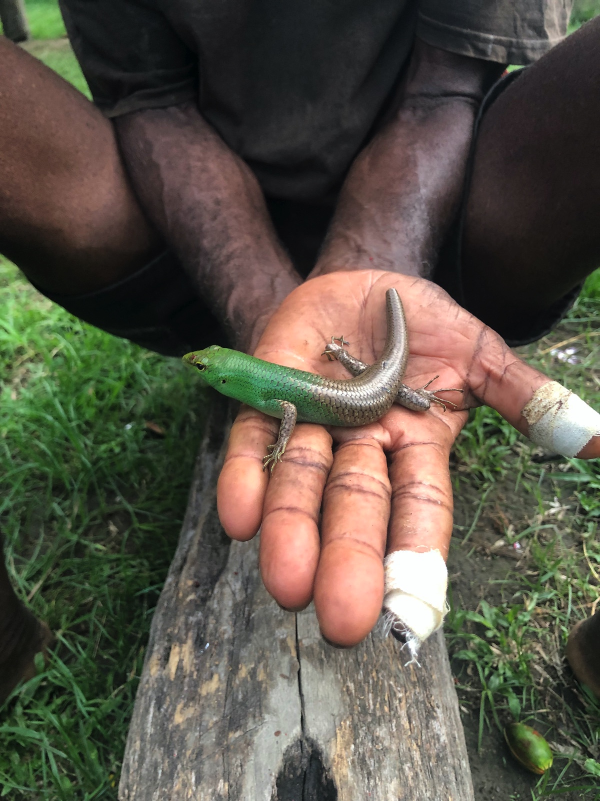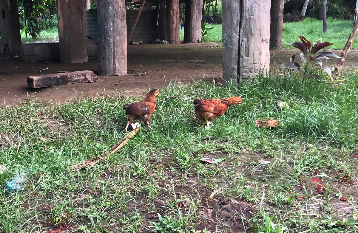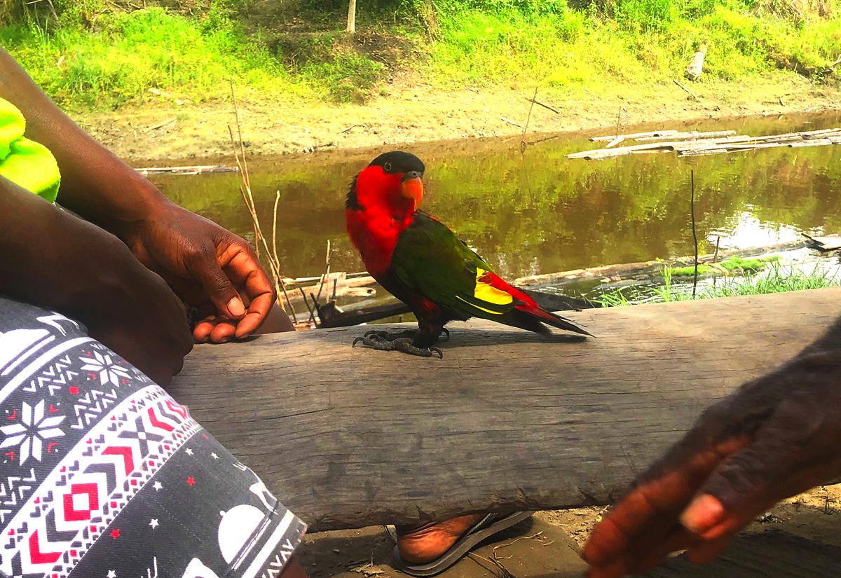 Lisaks kanadele peavad kohalikud kodustatud papagoisid. Samasuguseid võib siin kohata ka metsikult. Pildile on sattunud ka kahe kohaliku käed. Need on ikka väga erinevad valge inimese omast.
