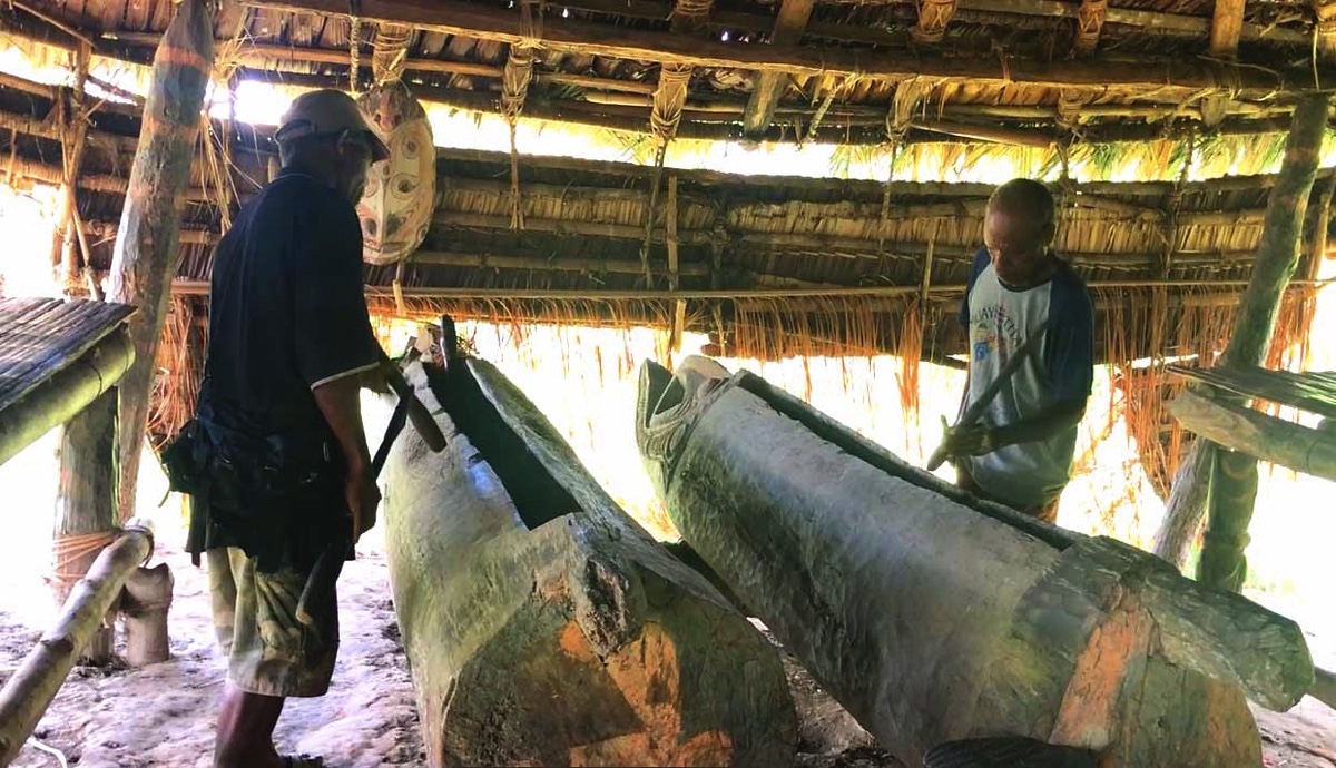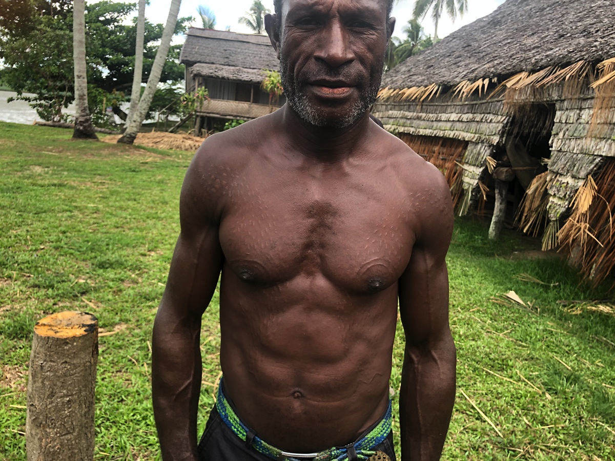 James tutvustas meile ka oma puuvoolimiskunsti ja kurtis, et ei saa enam sellega väga tegeleda, sest silmad on töntsiks jäänud. Kinkisime talle prillid, mille üle oli ta tõeliselt rõõmus. Uued prillid sai ka John. Tänutäheks otsis John oma shell-money varud välja ja tegime mälestuseks mõned vahvad pildid.