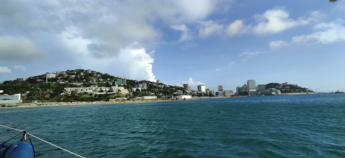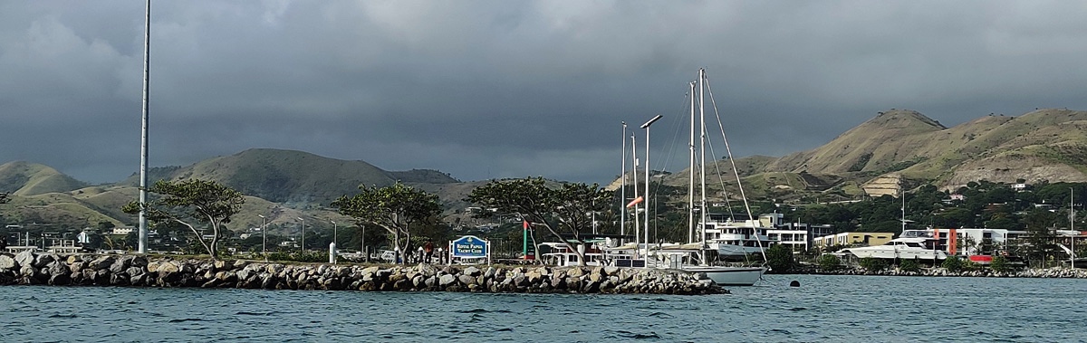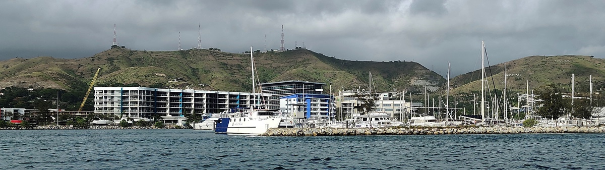 Port Moresby on Noonsite andmetel üks kõrgema kriminaalsuse tasemega linnasid maailmas aga jahtklubi pidi olema väga turvaline . Paistab, et nii ongi - valge nahavärviga inimesed on siin koondunud kas jahtklubisse või selle ümbruses olevasse kõrgete elektrifitseeritud taradega elamukvartalitesse liikudes ringi vaid autodega. Kohalikud toimetavad kõikjal mujal.