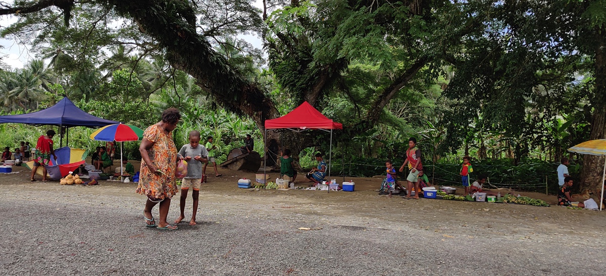 Igal pärastlõunal on küla keskel turg, kust saab osta rasvaseid pontšikuid, puu-ja köögivilju, toiduks kasutatavaid taimelehti, maapähkleid ja muidugi beetlipähkleid.