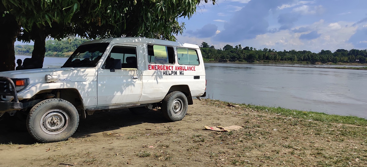 Ehkki Ambuntis ühtegi autot pole, sest maad mööda siia ligipääs puudub, toob haigla EMO-sse siiski umbes kilomeetri pikkune autotee. See ehitati perspektiiviga, et ehk luuakse mingil hetkel maaühendus ca 50 km teisel pool mägesid asuva magistraliga.
