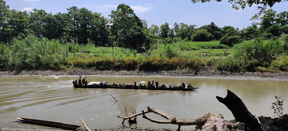 Jõgi läheb tasapisi kitsamaks, kallastel paistab erinevaid külasid. Vastu tuleb pikki mootorkanuusid, kus on sees kuni paarkümmend inimest oma asjadega.