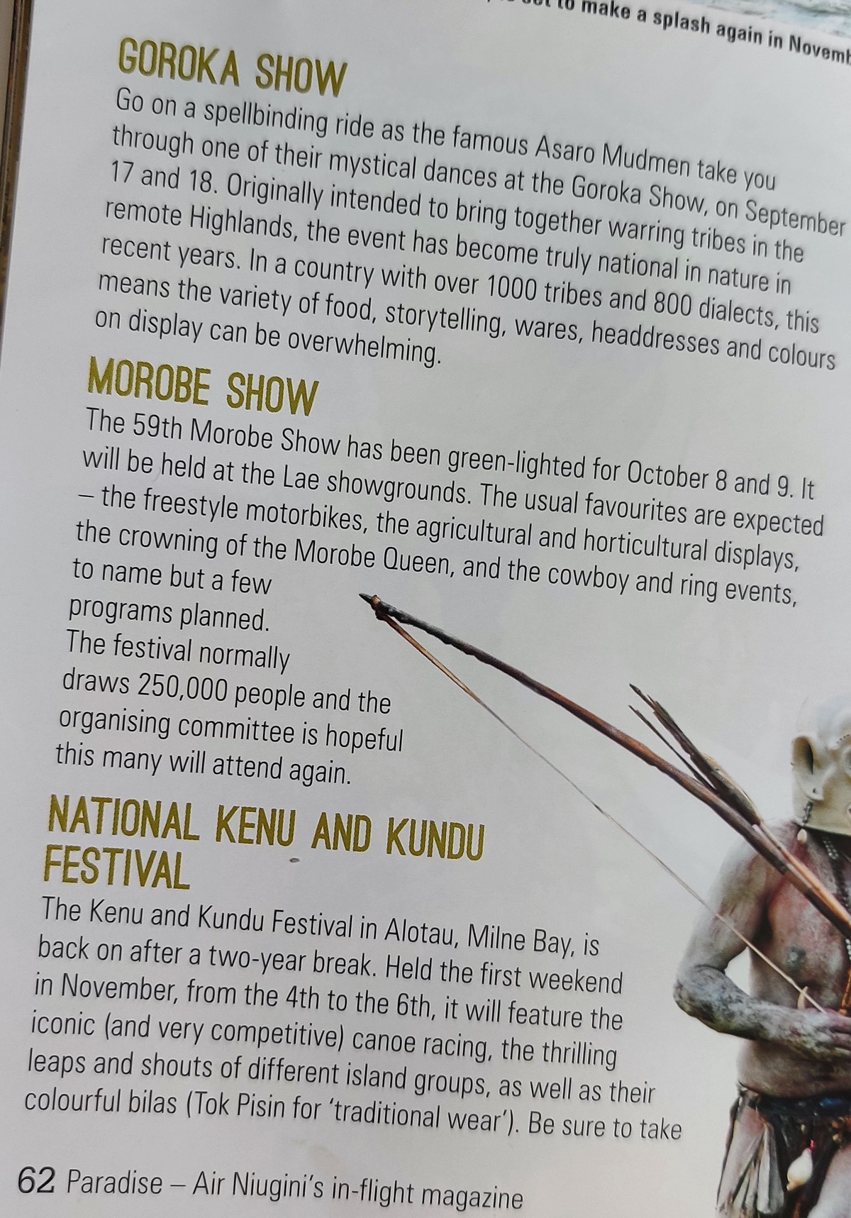 Takso lennujaama maksis 50 kina. Siselendude lennujaam on väike aga funktsionaalne, 4 väravaga. Onboard algas minutipealt. Lennukid ise on kaasaegsed. Lend Wewakisse kestis 1,5h.