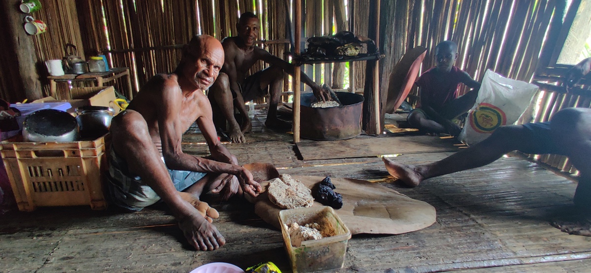 Uurisime veel ühe iseäraliku hüti kasutusotstarbe kohta. Selgus, et selles röstitakse kakaoube! Olulist ekspordiartiklit.