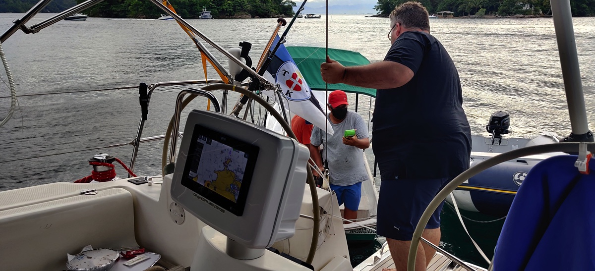 Mehed jõudsid tagasi pimedas, tõstsid julla jahi peale ja alustasime sõitu mandrile, et ennast Brasiiliast välja möllida. Saarte vahel tuult eriti polnud. Seega liikusime taas mootori jõul.