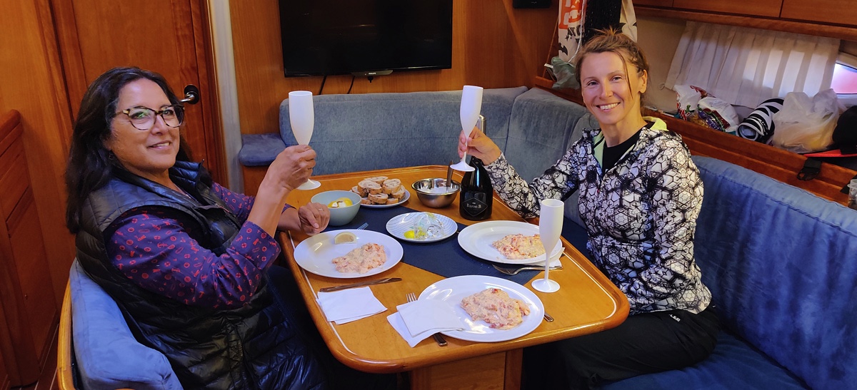 Mischiefi pardal tervitasid meid kolm soliidses eas härrasmeest ja üsna pea tuli välja, et tegemist on Tsiili Armaada admiralidega, kes planeerivad samuti sõita läbi kanalite Puerto Montti. Enne seda teevad aga ringi ümber Cape Horni. Tuleb välja, et Jorge, kes on Mischiefi kapten, on Eestit külastanud ja meie Välisministeeriumis töötav Tiia Kurik jättis talle külalislahkusega Eestist kustumatu mulje!