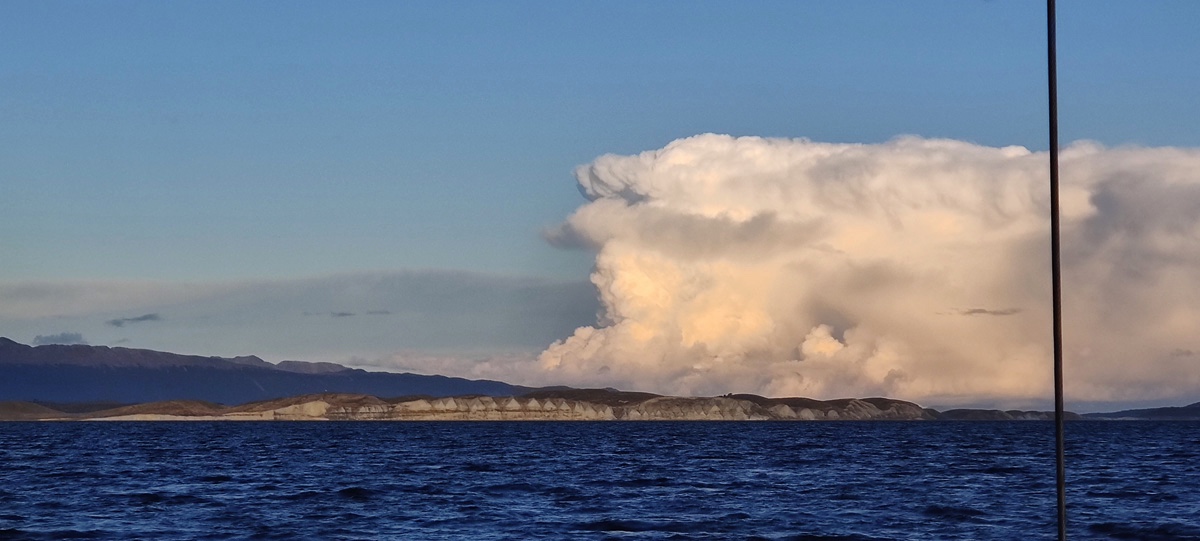 Peale Ushuaiast lahkumist tõmbas mees mobiiltelefoni jahi masti (et levi pikemalt kestaks) ja saatsime veel viimaseid sõnumeid ning tegime viimaseid makseid - ei tea ju, mis levi meid Tšiilis ees ootab. Puerto Williams on Ushuaiast kõigest 25 miili kaugusel ja peatselt hakkas paistma asula vastas olev haihambuline saar. Seekord koos ägeda pilveseinaga:)
