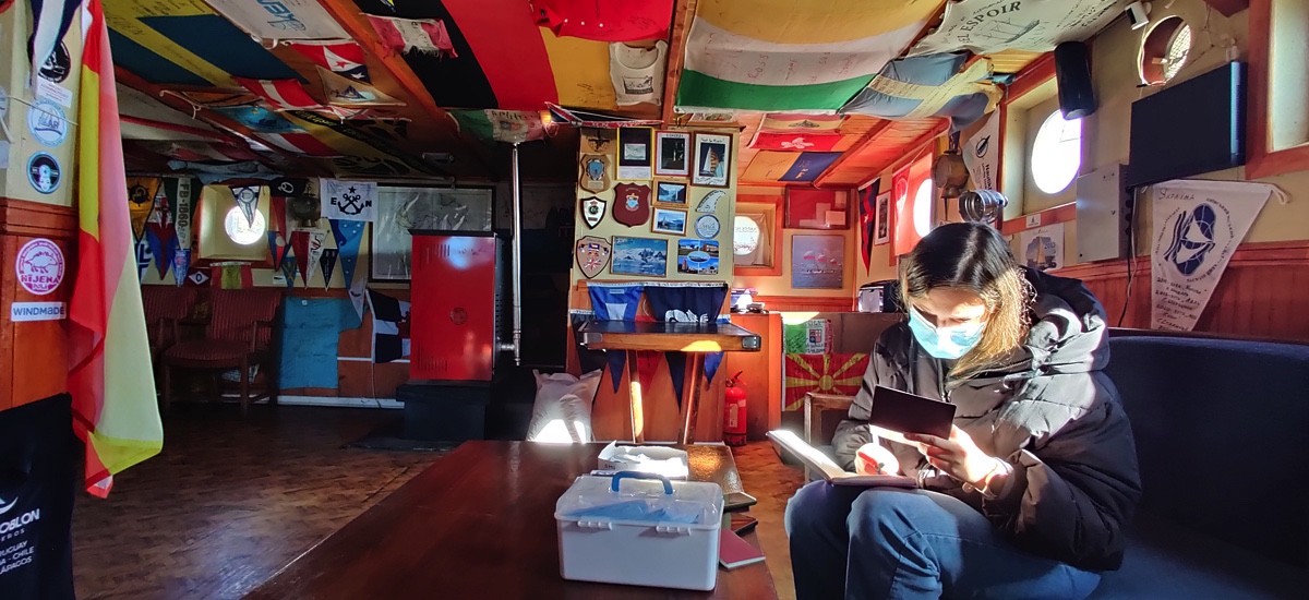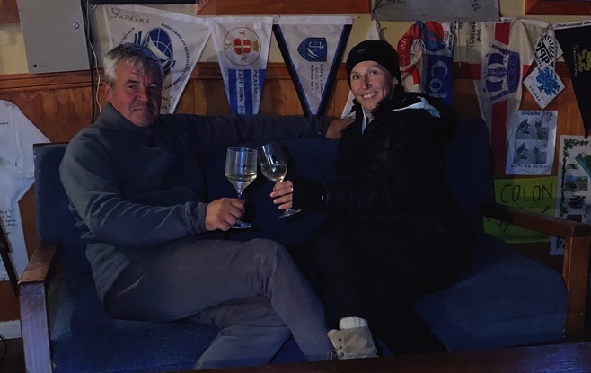 Meie kaisse saabus venelaste Antarktika kruiser Rusarc Aurora. Selle kokk Artur kutsus meid boršisuppi sööma. Jammi!!! Lisaks saime teada, et jaht läheb reisijatega edasi Tšiili kanalitesse ja kapteni naisel on korralik kogemus Tšiili Terviseameti poolt nõutavate MeVacunade vormistamisega. Ta tuli meie paadi pardale ja aitas naisel MeVacuno taotluse korda teha. Uskumatu vedamine lõpuks! Kahju ainult, et parasjagu oli pühapäev ja tuli oodata esmaspäeva, et taotlus läbi vaadataks.