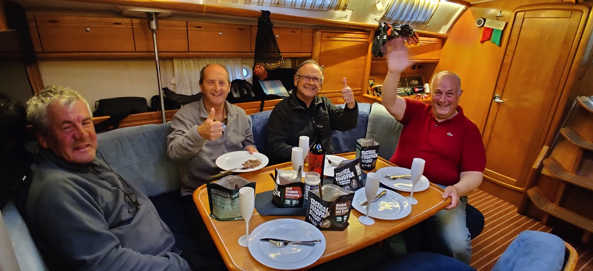 Õhtuses ankrukohas korraldame admiralidele Tactical Foodpacki toodete tutvustuse ja degustatsiooni. Nad on meeldivalt üllatunud sellest, kui head need toidud on ja tunnevad siirast huvi nii Tactical Showeri kui ka muude toodete vastu.