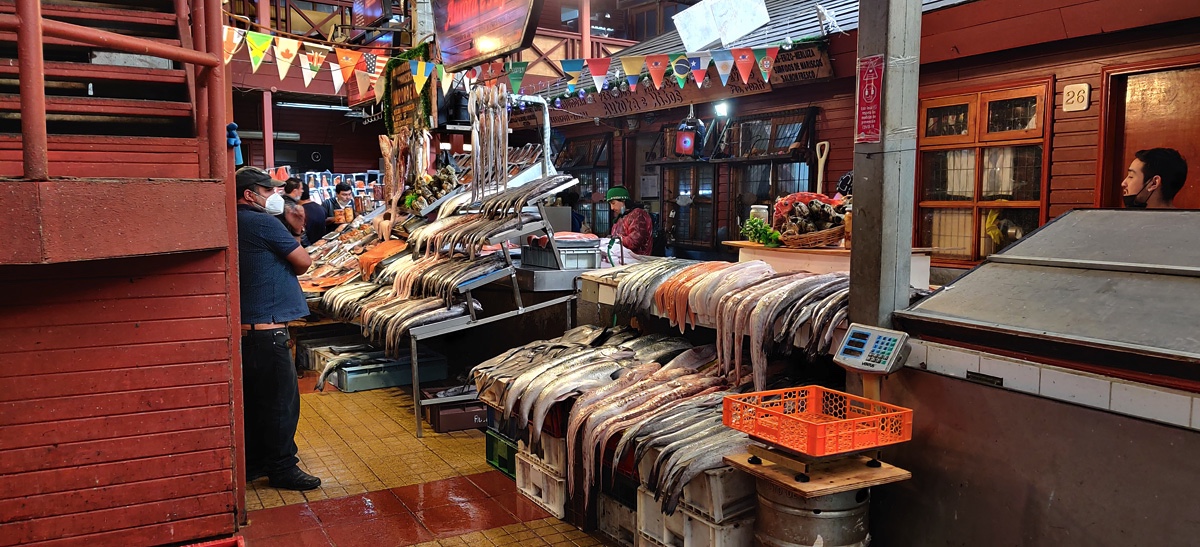 Kõige toredam Puerto Monttis ei olnudki mitte linn ise oma madalate valdavalt räämas hoonetega vaid kaldaäärne ja sealsed vaated. Kalaturg oli ka täitsa vahva.