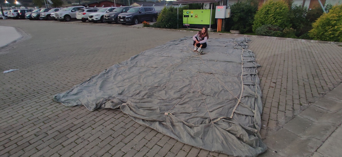 Admiralide kingitud langevari osutus hiiglaslikuks madratslangevarjuks. Selleks, et seda kasutada, lõikasime sealt välja umbes kolmandiku. Otsad peab naine moodustunud ca 3x3meetrise tormiankru äärtesse ümber õmblema ja läheb kasutusse.