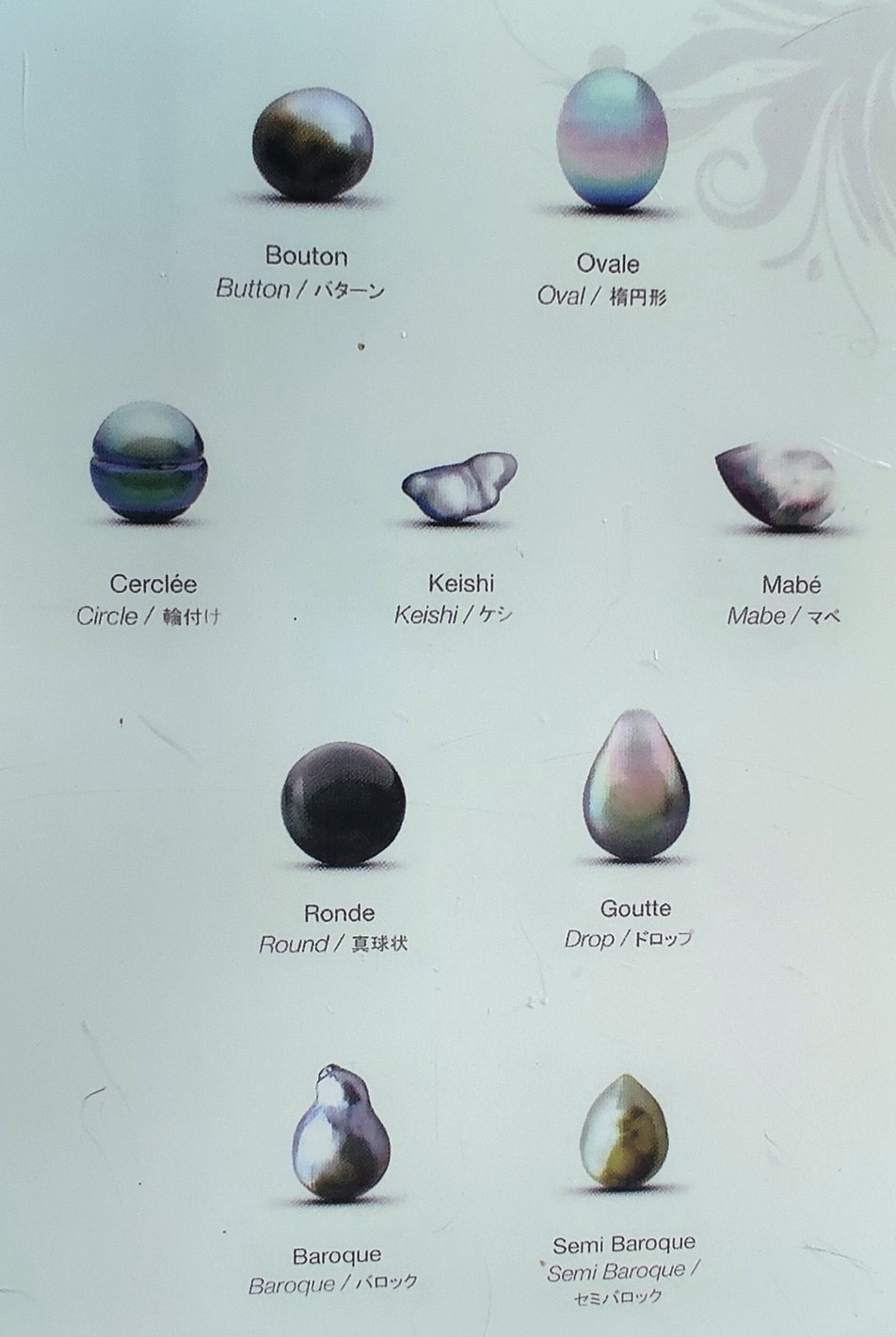 Pärlid on erineva kujuga, levinumad on ümmargused aga kasvatatakse ka ovaalseid, tilga kujulisi ja keerukama kujuga.