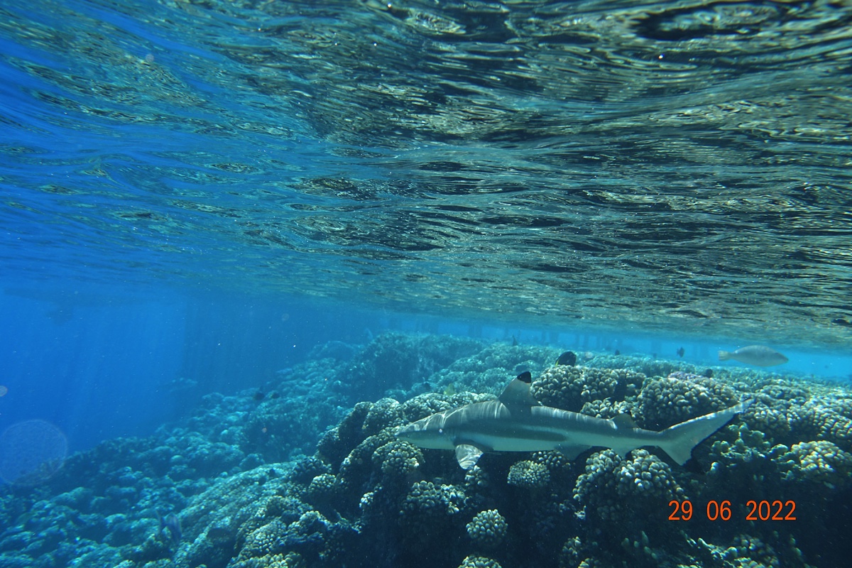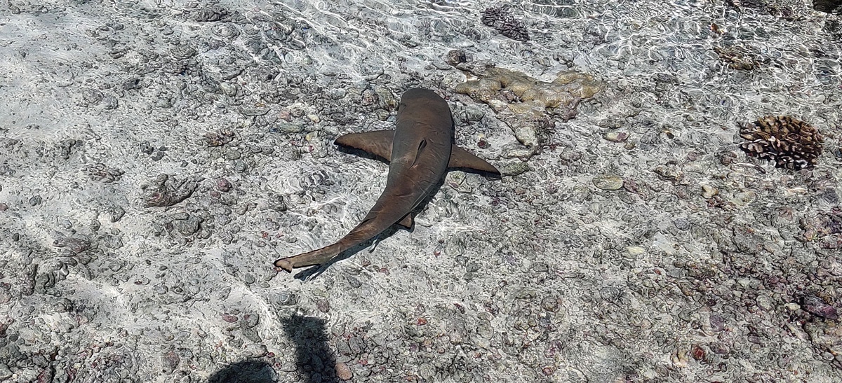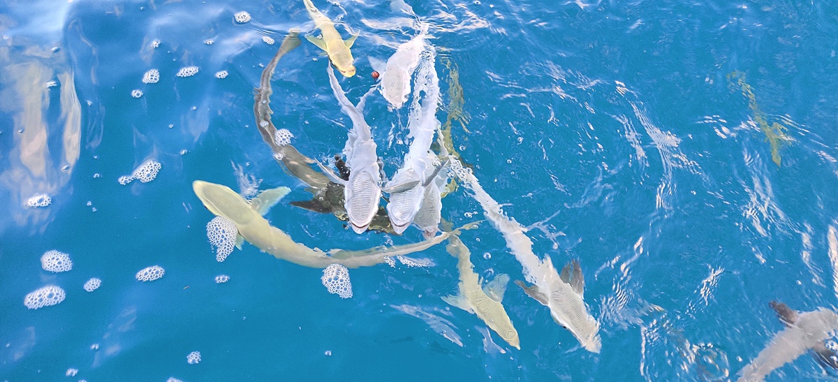Jahi all siin haisid pole küllaga on üsna palju neid kalu, kes kinnitavad ennast haide külge. Viskasime ablastele kaladele saia ülejääke ja saime lähedalt silmitseda nende põnevat pea kuju. Eemalt uudistas toimuvat suur merikilpkonn - siin ikka on vahvaid mereelukaid.