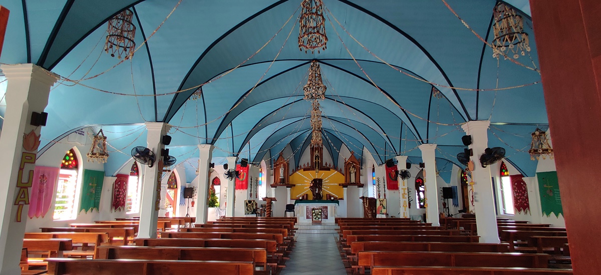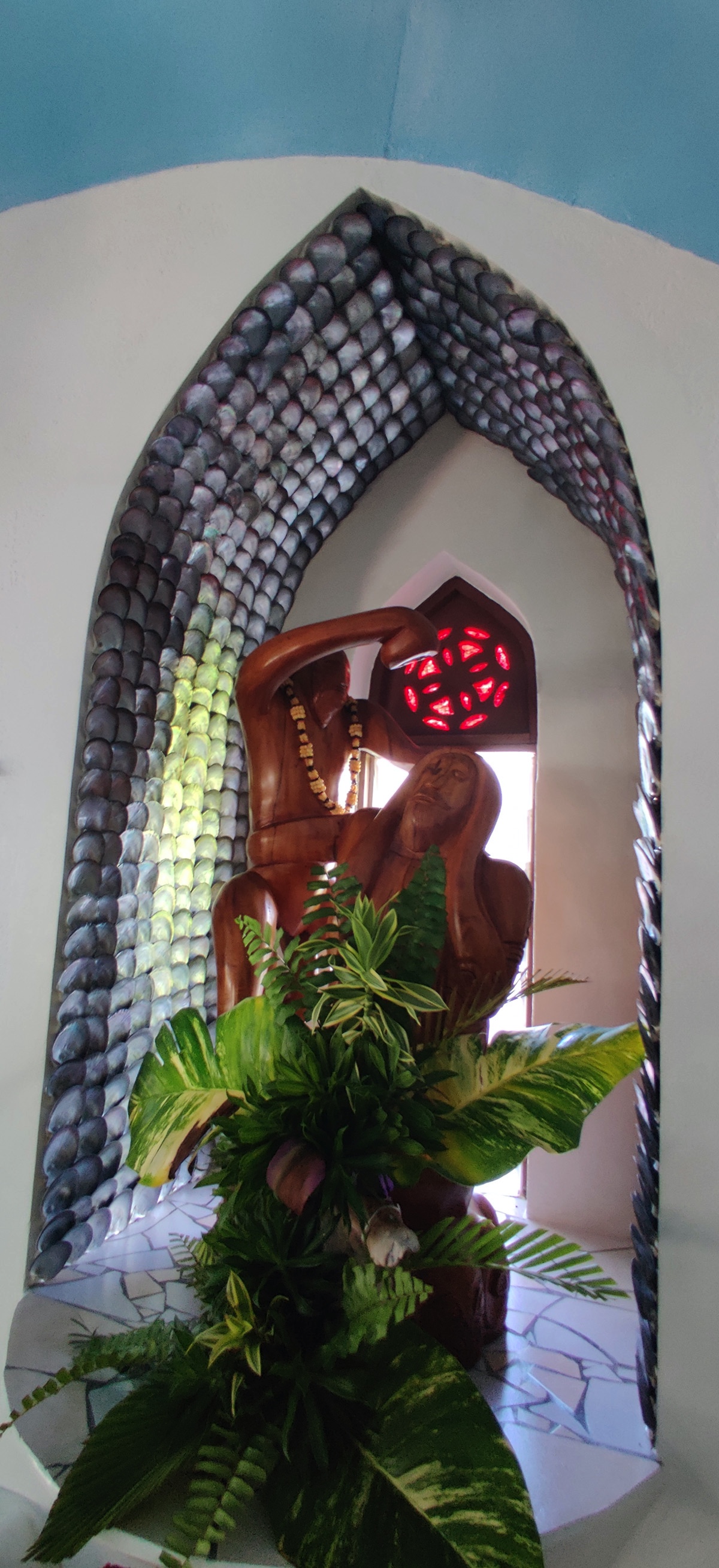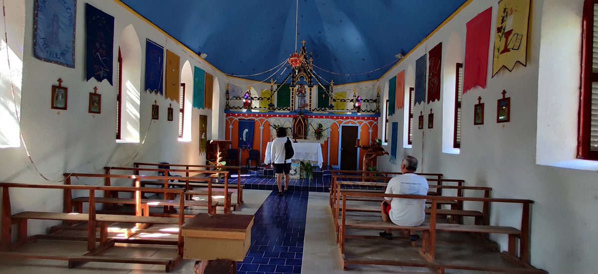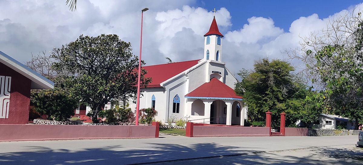 Enne sukeldumist jõudsime veel heita pilgu kohalikule kirikule ja teha tiiru ka pisut eemal väikesel saarel asuvate bungalote juures. Selgitasime välja, et maajupil, kus me asume, puudub maaühendus ülejäänud osaga atollist. Edasi saab liikuda vaid paadiga.