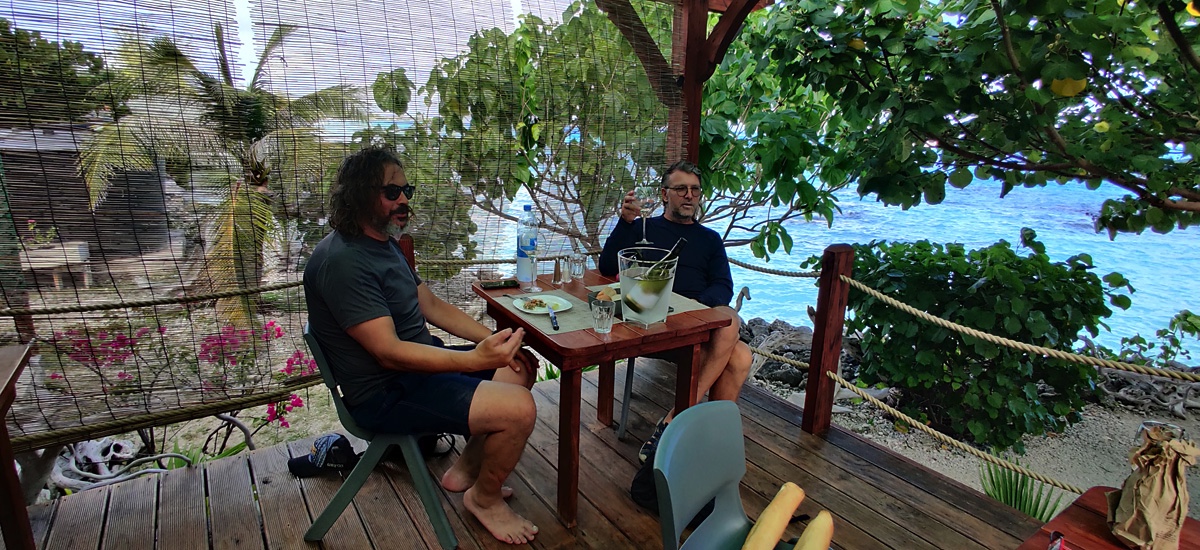 Emotsioonid laes tundsime nüüd siiski puudust heast restoranist. Compendumi info kohaselt peaks üks resto asuma poolel teel atolli teise otsa - Yacht Service juures. Ankur välja (tuli üllatavalt hästi) ja teele.