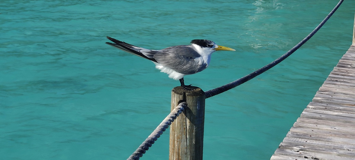 Bungalote reseptionis asus väike söögikoht, mis bungalote kliente teenindas (meie saime osta vaid juua) ning kust oli võimalik ka sukeldumiseks aega broneerida. Söögikoha terrassilt sai jälgida sealsamas kaldaääres madalikul tiirutavaid haisid. Üks tore notsu lippas ka bungalote vahel ringi:)