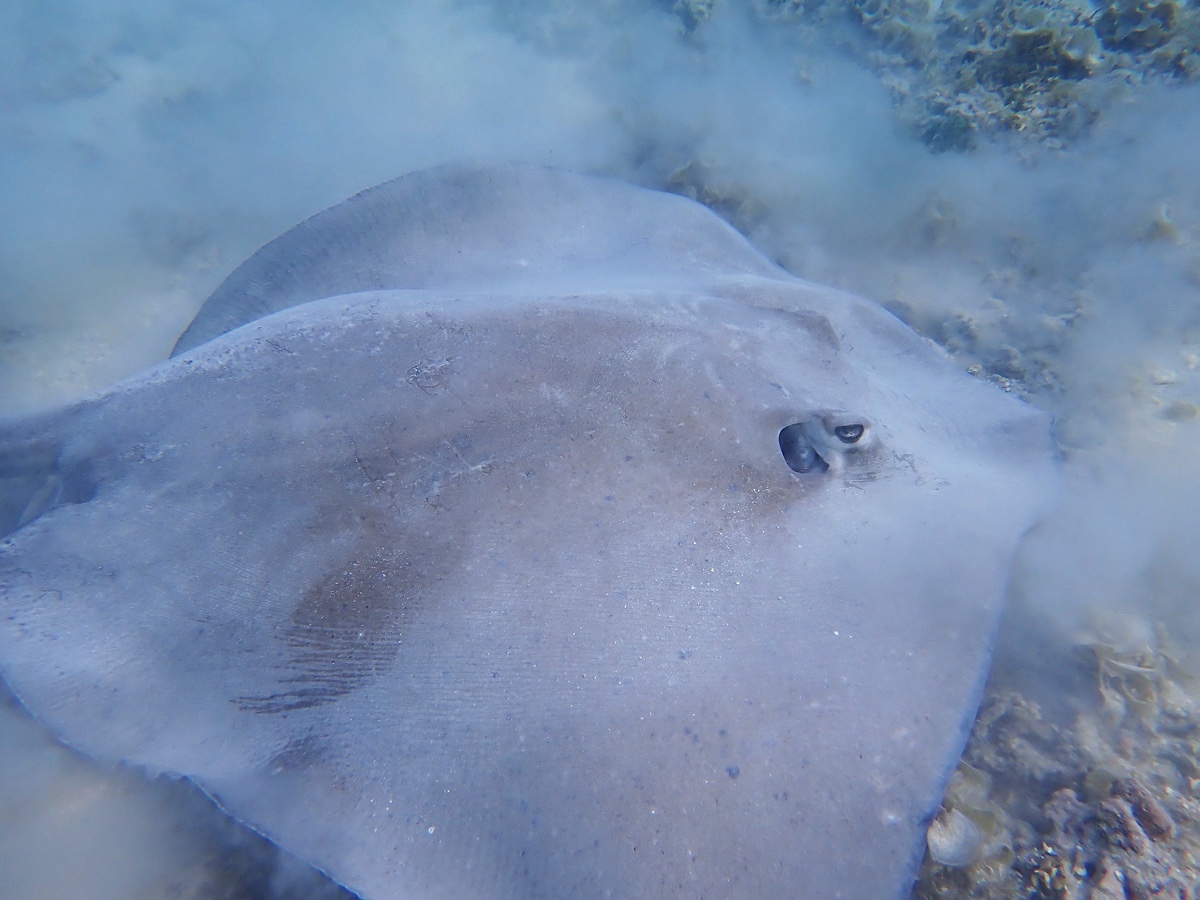 Naine käis siin snorgeldamas ja sai korraliku elamuse, kui leidis oma kõhu alt madalast veest liiva sisse kaevunud ca meetrise läbimõõduga rai. Esialgu ei julgenud kumbki ennast liigutada aga siis võttis naine julguse kokku ja tegi raile pai. See vist elukale ei meeldinud, sest ta lahkus kiiruga keerutades üles korraliku liivapilve:)
