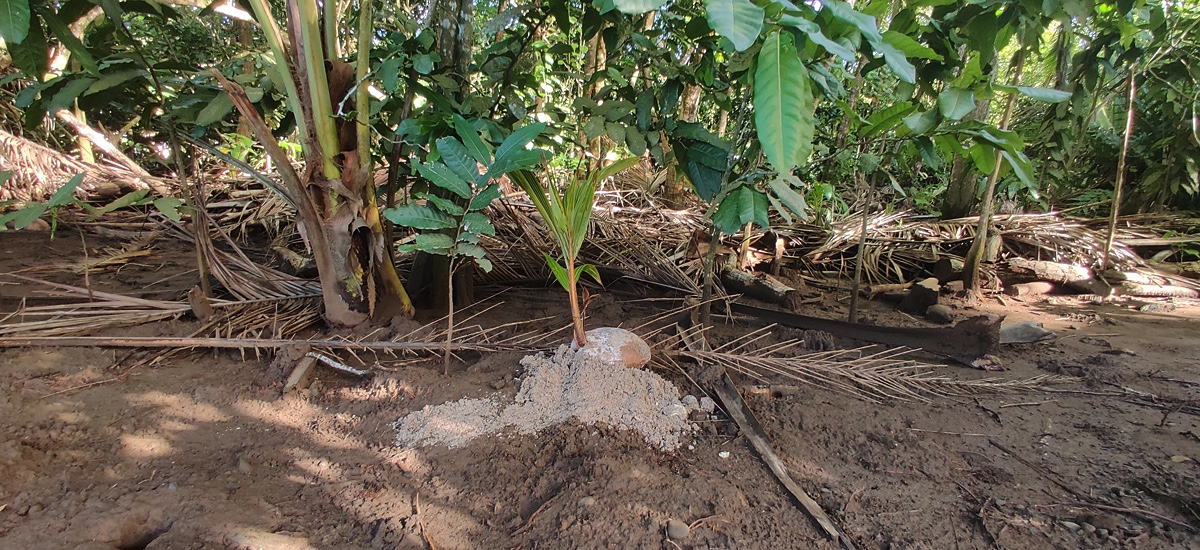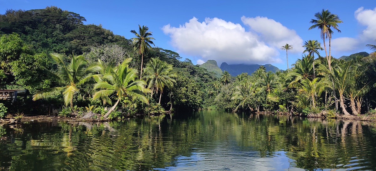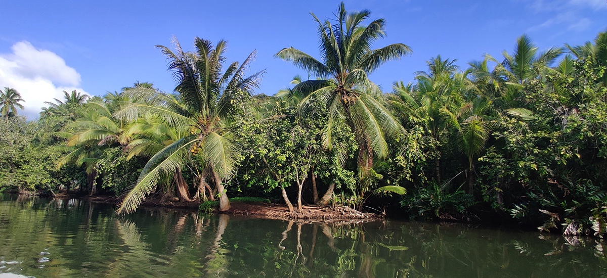 Järgmisel hommikul tegime kaks jullaekskursiooni. Esimese eesmärgiks oli muuhulgas meie pardapalmiga hüvasti jätmine, sest meie järgmine sihtkoht Cooki saared ei nõustu vastu võtma aluseid, kus on peal taimi muudest paikadest. Sõitsime jullaga sisse ühest jõest, mida olime eelmine õhtu külas jalutades märganud ja leidsime oma palmile toitaineterohke pinnasega uue elupaiga.