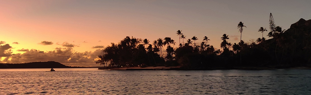 22.07Kätte on jõudnud Prantsuse Polüneesiast lahkumise hommik. Viimane rahulikus vees hommikusöök ja hommikusuplus, viimased internetisõõmud/rõõmud, julla paadilaele ja otsad lahti. Sõidame juba, kui meie kõrvale ilmub mootorpaadiga saareametnik ja kasseerib meilt 8000 kohalikku (ca 80 euri) poi kasutamise eest (tema arvestust mööda siis kahe ööpäeva eest). Maksta saab kaardiga. Väga mugav ja viisakas teenus, täname härrat.