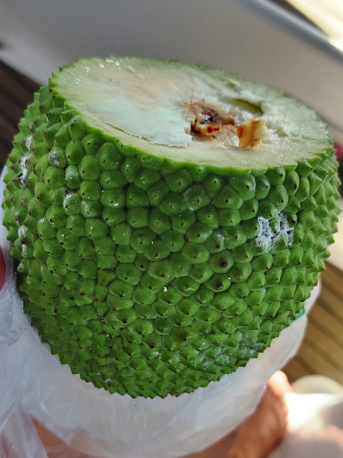Puu otsast murdes, tuli murdekohast uskumatul hulgal mõrkjat kleepuvat võilille piima sarnast piima. Küpsena muutub vili pehmeks ja haiseb kohutavalt. Kohalikud söövad seda pooltoorena, ilmselt keedavad vms, sest ilma töötlemata ei kannata seda süüa. Maitse meenutab võilille piima sisse kastetud kartulit.