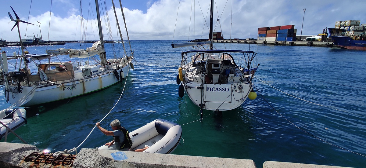 Esmalt kamandati meid sadamasse kai äärde. Seal tulid pardale kolm ametnikku. Terviseametnik jäi rahule kohe, kui nägi meie negatiivseid testitulemusi. Kasseeris 25 kohalikku ja kadus. Edasi tolliametnik. Selle jaoks oli naine ette valmistanud ja täitnud hulga igasugu vorme. Härra ametnik tegi oma telefoniga hotspoti ja vormid rändasid õnnelikult tema meiliaadressile. Ka tema lasi kohe jalga oma saagiga. Siis veel immigratsiooniametnik, kes oli ise hulga vorme kaasa võtnud ja kui need täidetud said, lõi templid passi. Olimegi sisse möllitud. Pidime jahi kinnitama teise kai äärde. Kai ei ole siin mõeldud jahtidele. Kai ääres seistes ei saa ei vett ega elektrit. Tegelikult ei ole võimalik isegi mitte paadist otse kaile astuda - tuleb jullaga sõita.