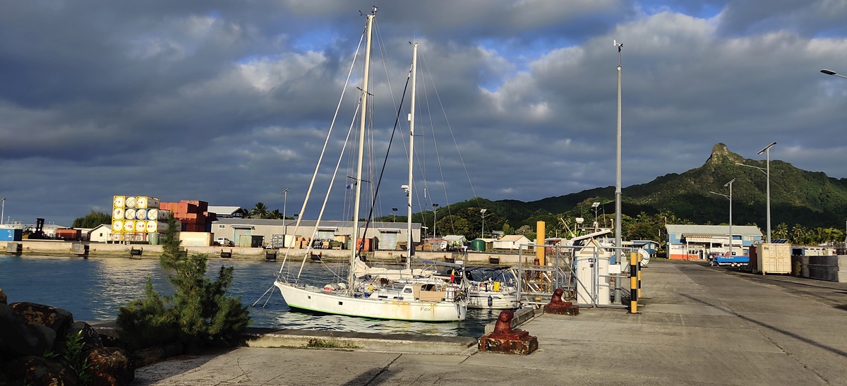 Rarotonga sadam on ookeanituultele nii avatud kui olla saab ja kui ookeanil puhub tuul 10-15 m/s, on selles nn sadamas puhas põrgu! Korralik tuul ja 1,5 meetrine laine tuleb sisse kaisse, kus moorimiseks kasutatakse nn "mediterrian mooringut", mis tähendab, et lased vöörist ankru välja ja kinnitad ennast ahtrist otstega kai külge. Mis te arvate, kas 5-7m sügavusele lastud 35m ketti ankrut pidas? Õige vastus on, muidugi mitte! Keset ööd olime ahtriga kaile nii lähedal, et hakkasime järjest ankruketti sisse kerima ... ja ühel hetkel polnud ka sellest enam mingit abi, kogu kett oli sees. Triivisime otse kaisse ja mis veel hullem - vajusime selga kõrvalolevale Belglase Stefaani jahile. Ruttu mootor tööle - ei käivitu! Mingi ots on vintsis. Palusime Stefaanilt luba üks ots nende jahi külge kinnitada. Õnneks nad lubasid. Uurisid, kas meil tagavara ankrut pole, et saaks jullaga minna ja välja visata. Hea mõte aga julla oli ainus, mis jäi sel hetkel jahi ja kai vahele ja kaitses jahti hävingu eest.